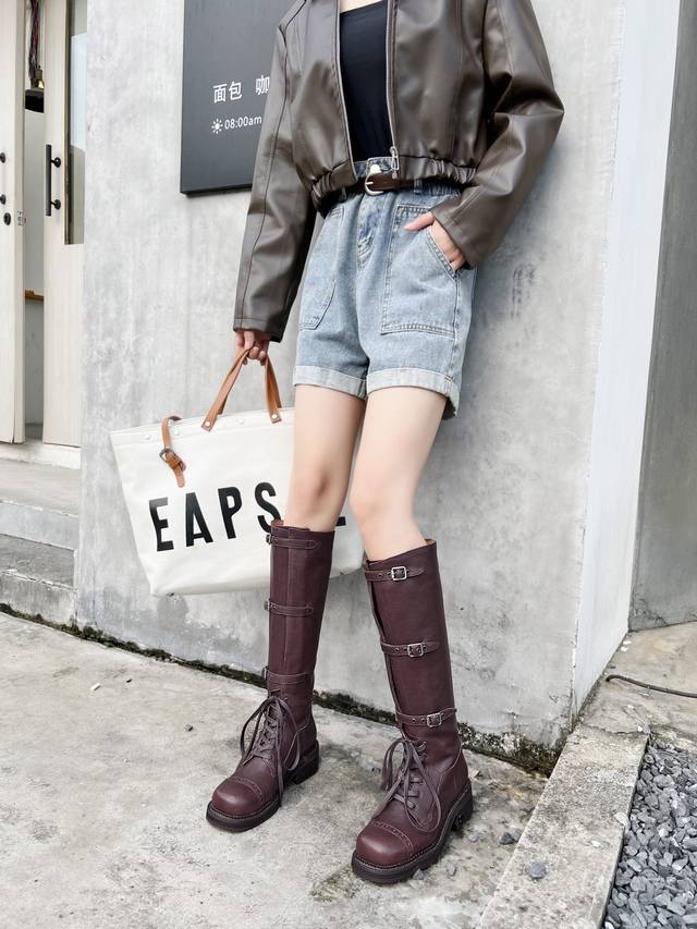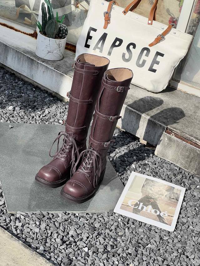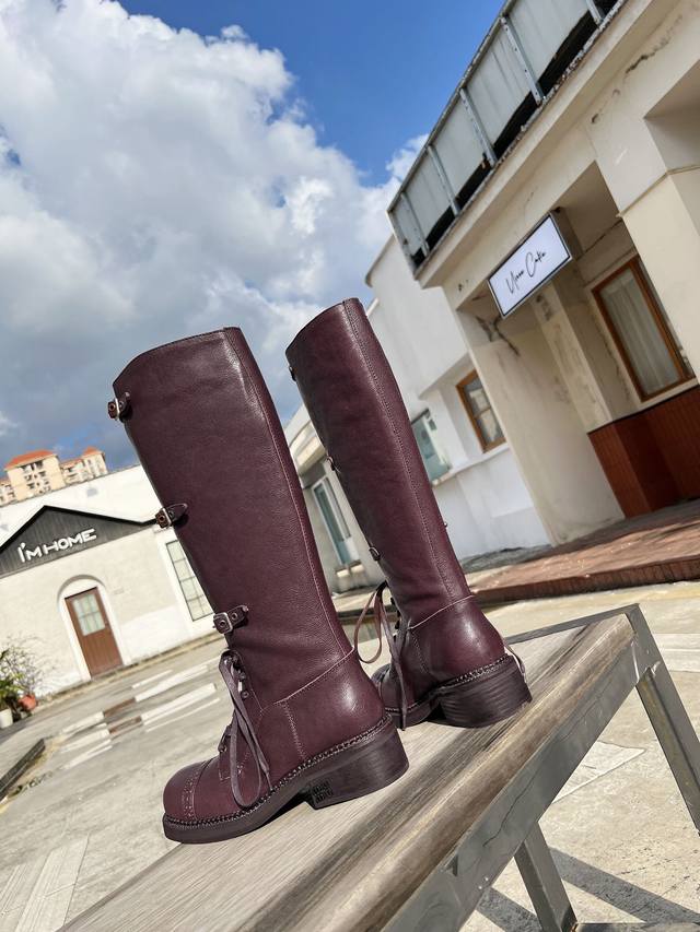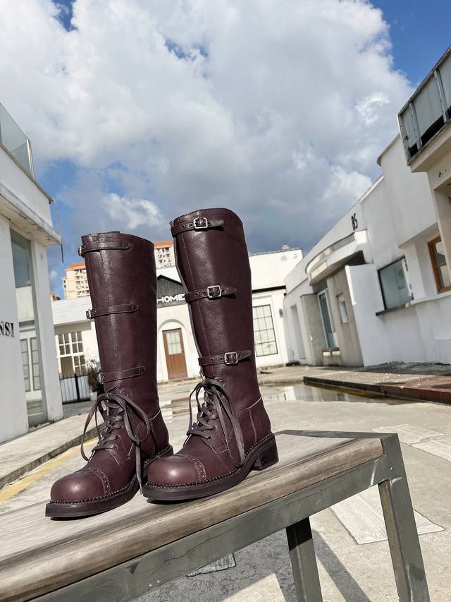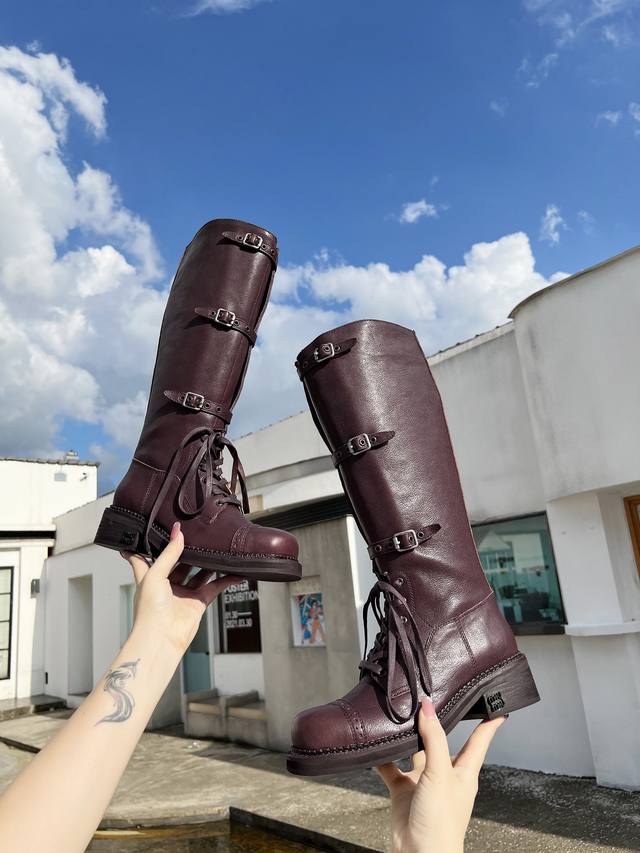 Miumiu2024秋冬走秀新款复古机车靴