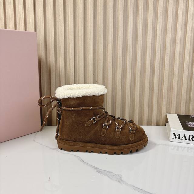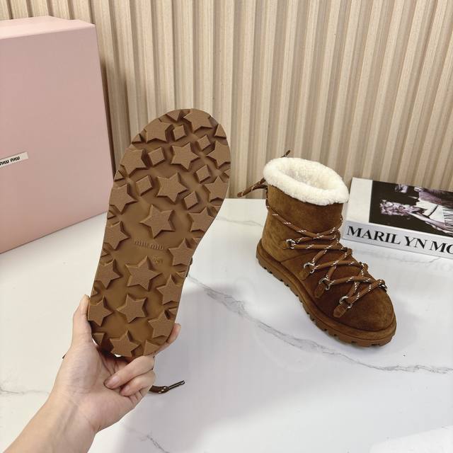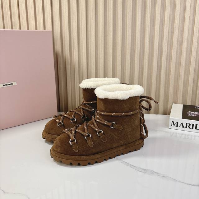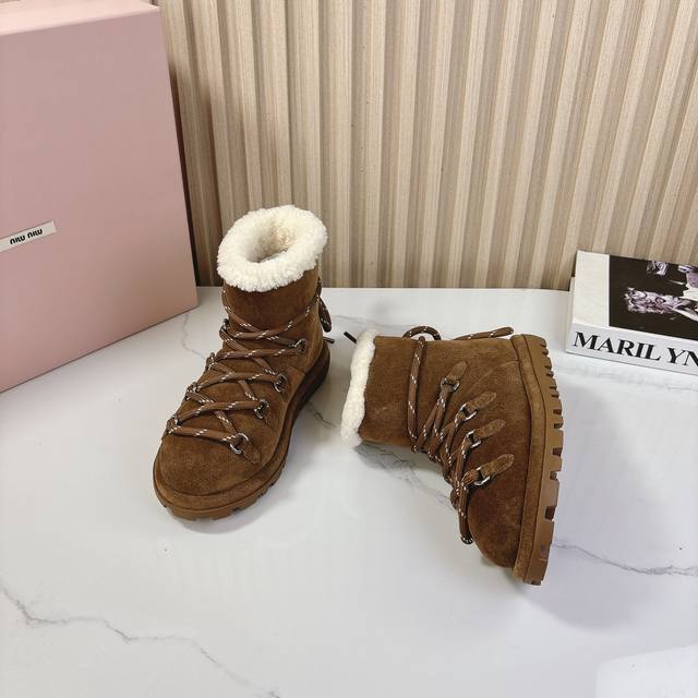 miumiu2024秋季新款羊毛款雪地靴 原版 1:1开发,各大明星 网红的热爱款 ,亲肤秋冬必备款 鞋面简约设计性感 面料:牛二层磨砂皮 内里羊羔毛 原版开模