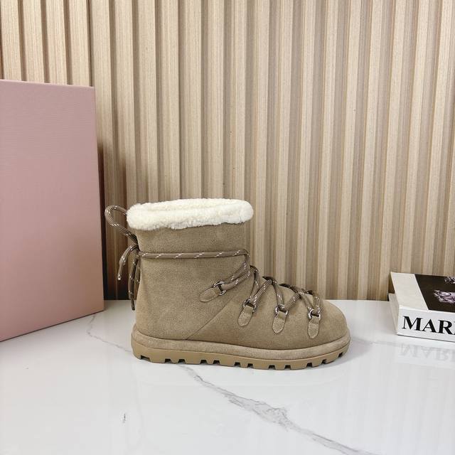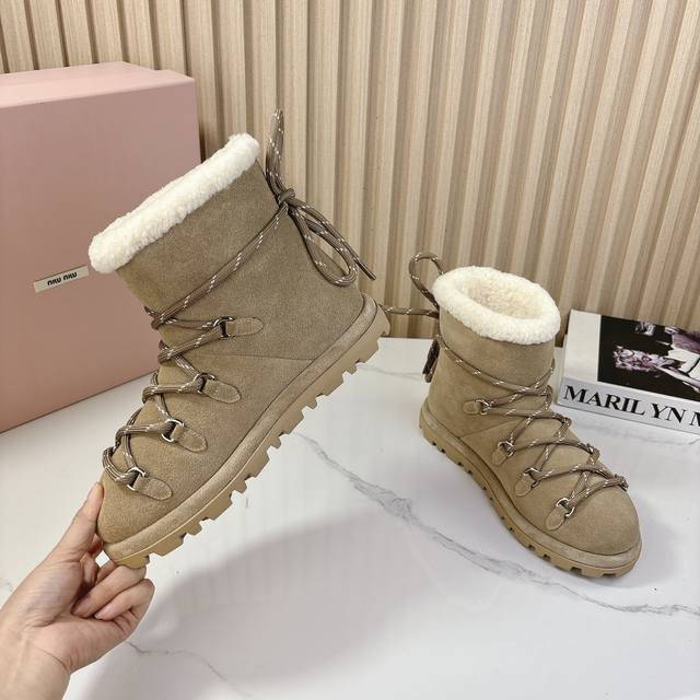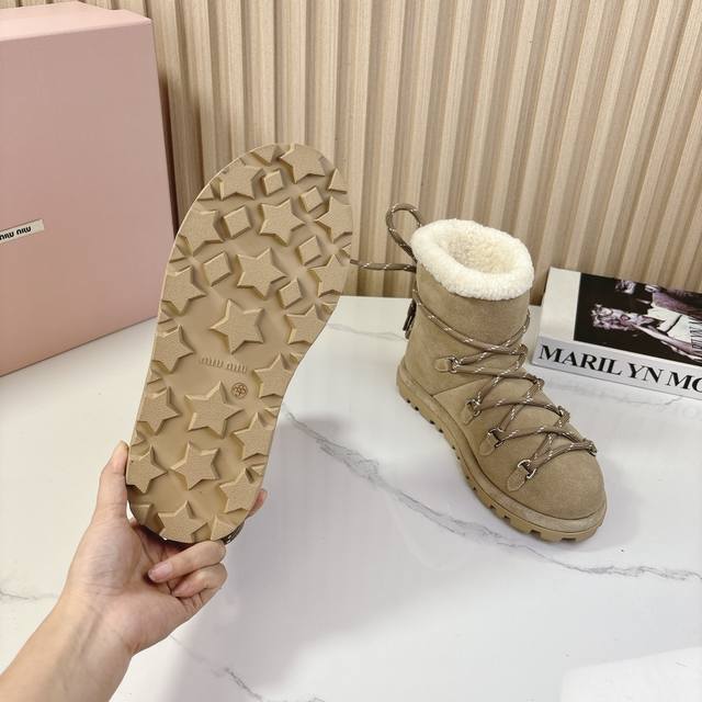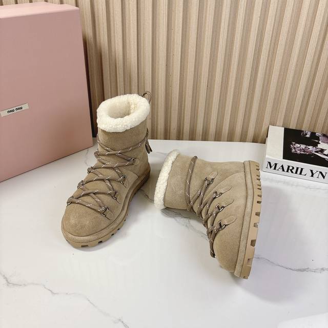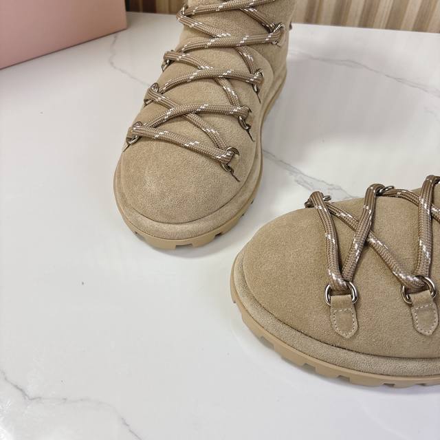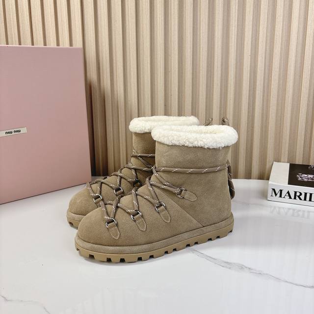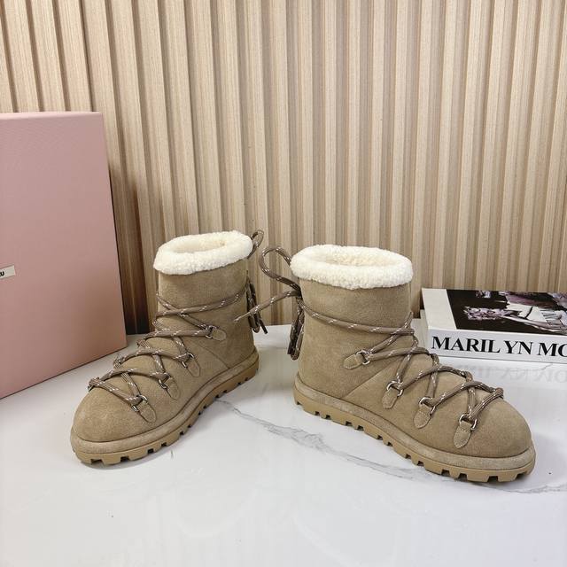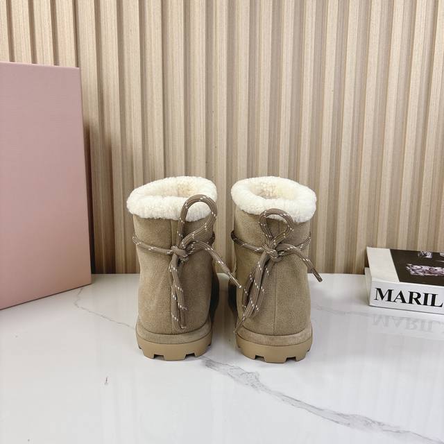 miumiu2024秋季新款羊毛款雪地靴 原版 1:1开发,各大明星 网红的热爱款 ,亲肤秋冬必备款 鞋面简约设计性感 面料:牛二层磨砂皮 内里羊羔毛 原版开模