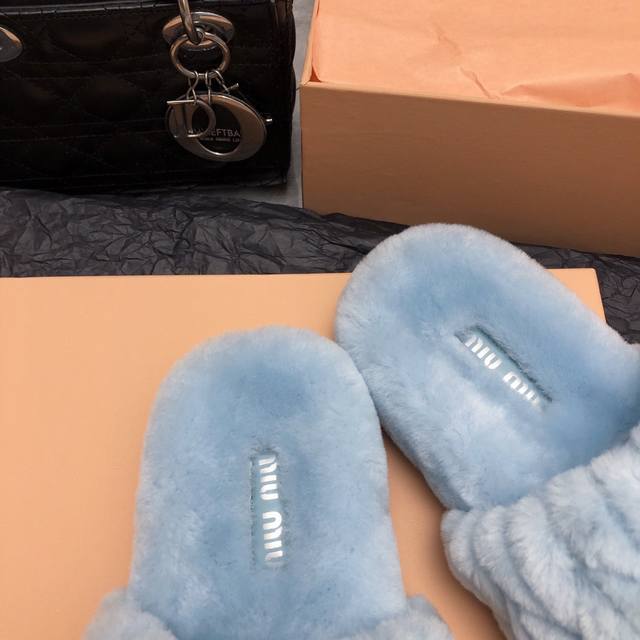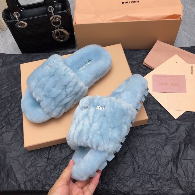 Miumiu24秋冬新品毛拖 !进口蓬松柔软组合羊毛 独特慵懒个性风格!