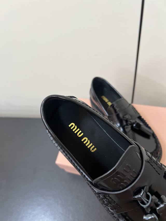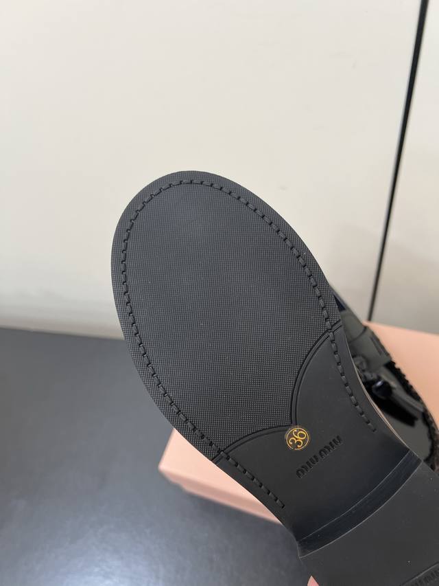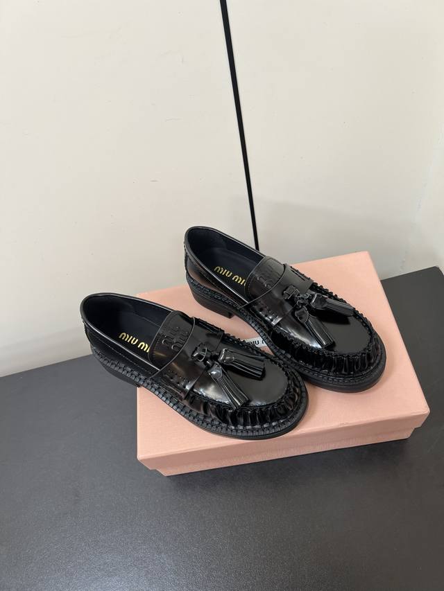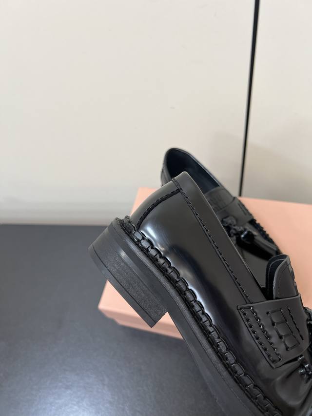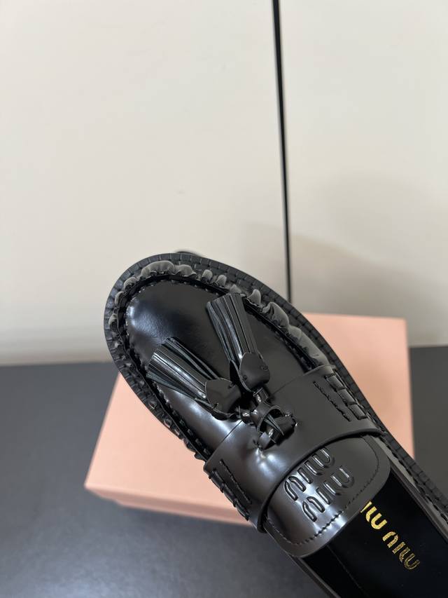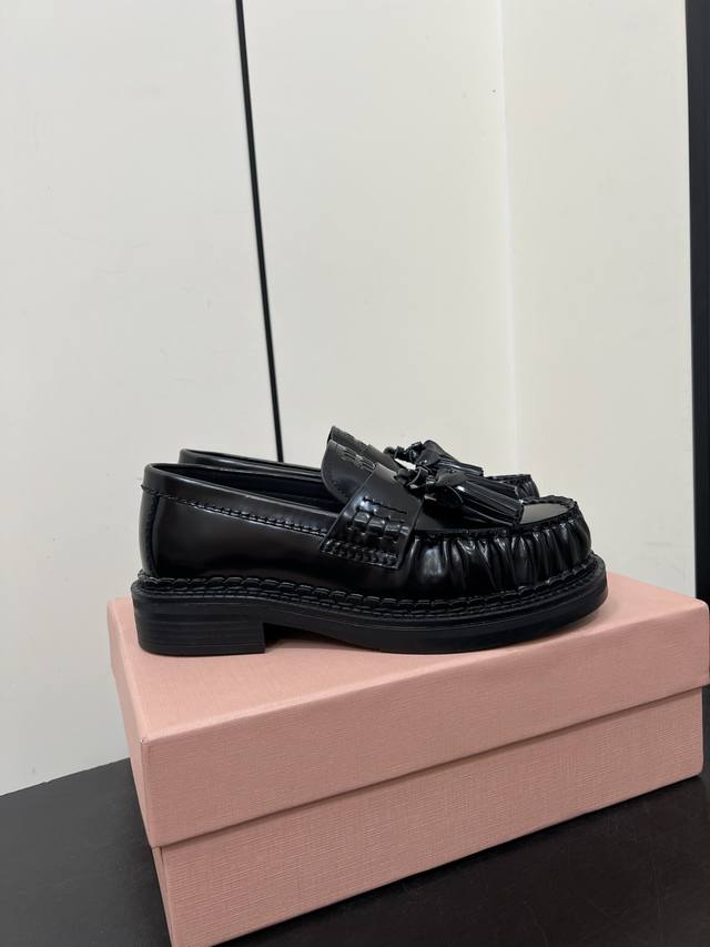 Miumiu25Fw新款流苏乐福鞋小皮鞋 粗跟厚底