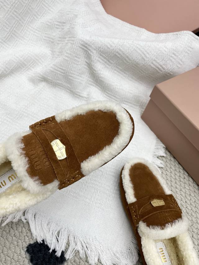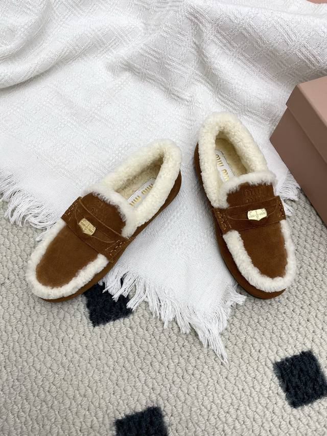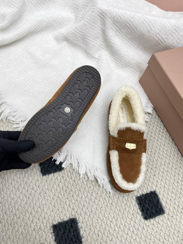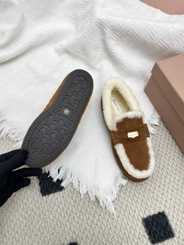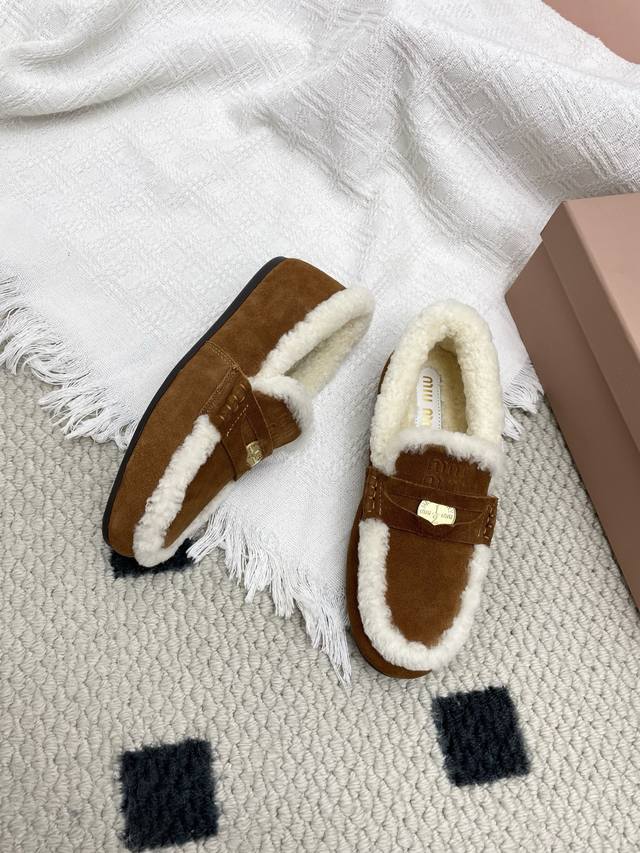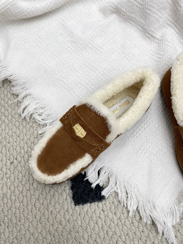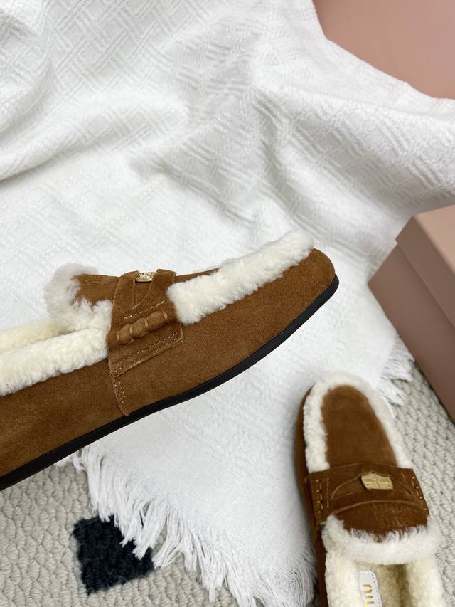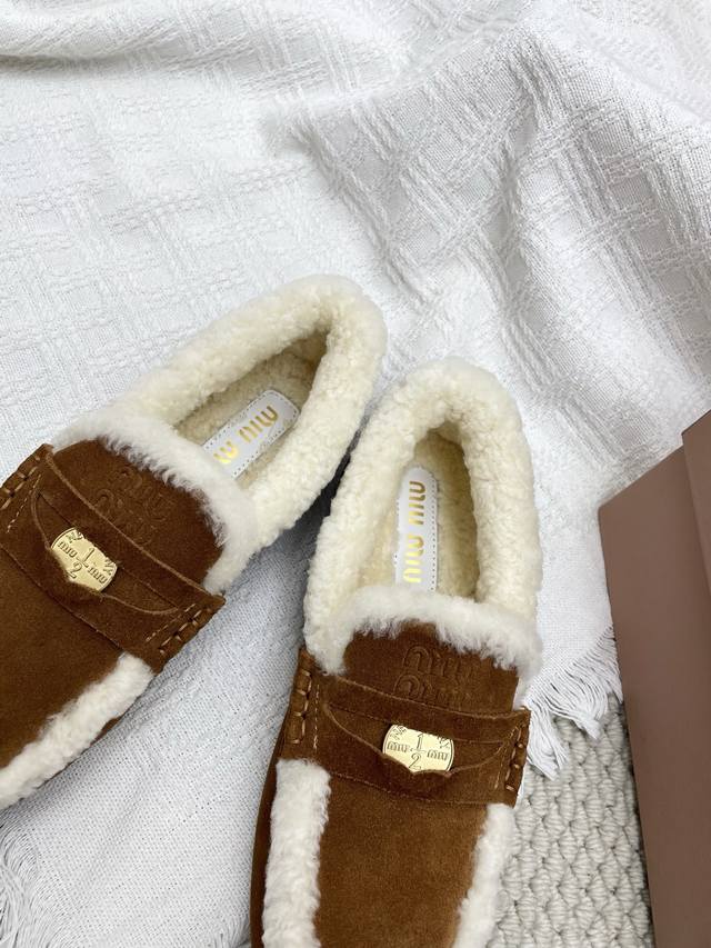 / Miumiu25Ss秋冬新款金币平底毛毛单鞋毛鞋 走秀新款复古时尚 简约高级 随意搭配 上脚非常舒适,超级重工 鞋面:原版牛反绒 内里:羊毛 大底:原版大底,柔