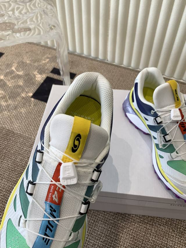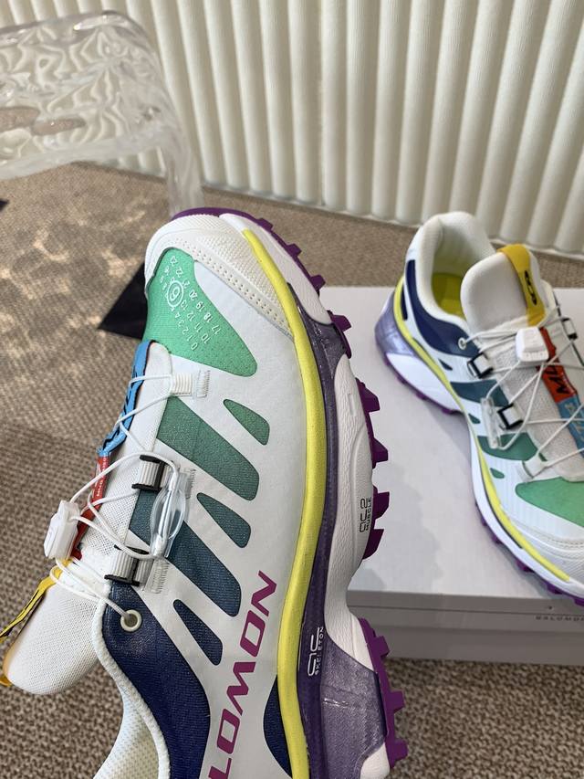 这一期的联名款很有特点 特殊的材质和半拖的设计在夏季穿的话也会很透气。这款保留了salomon Xt-4跑步鞋的经典设计的基础上、进行了改良、打造出了一款适合炎热夏季的穆勒鞋。搭配科技感十足的大底、细节之处尽显精致、这款鞋的推出无疑为mm6、Maisonmargiela 的粉丝带来全新的时尚体验、同时也为salomon品牌注入了更多的时尚元素。