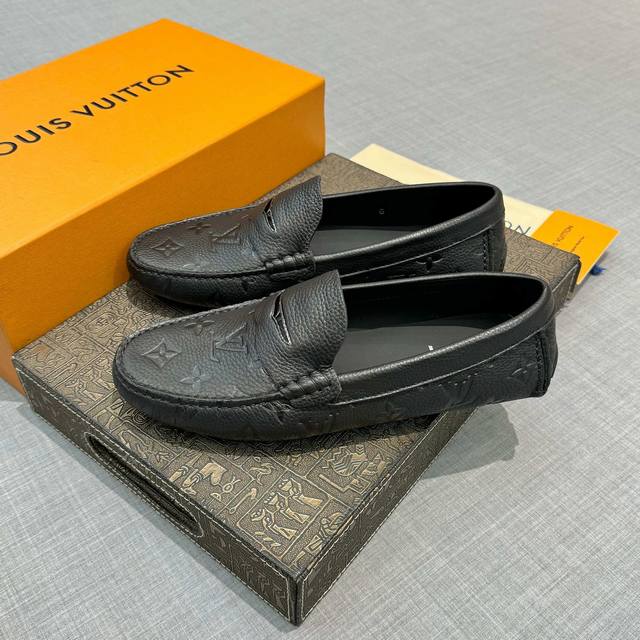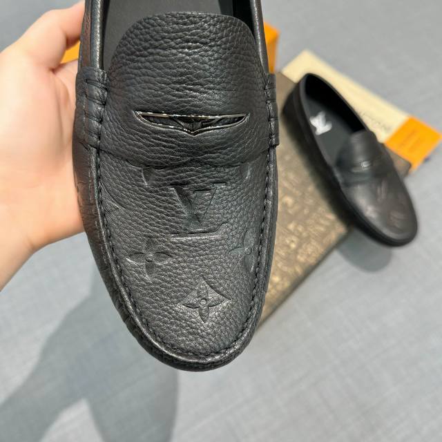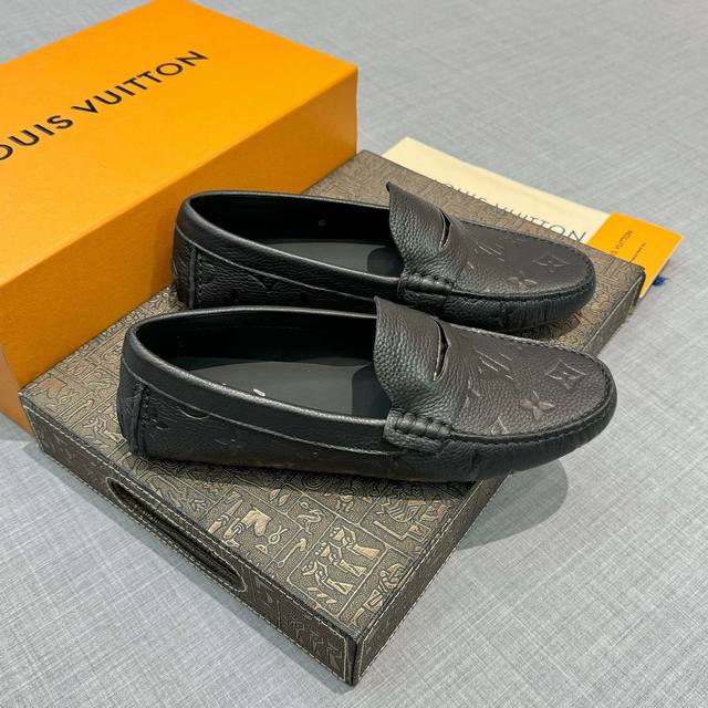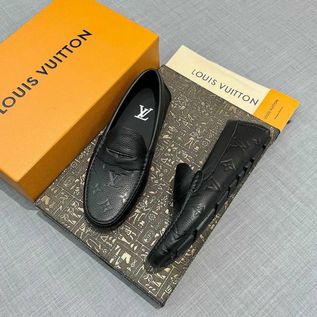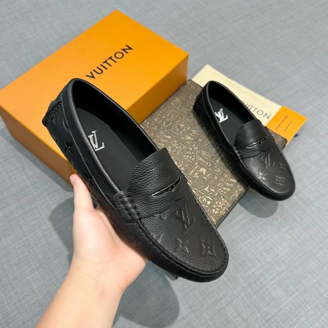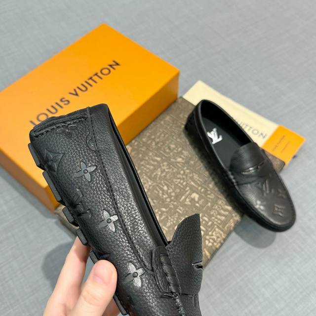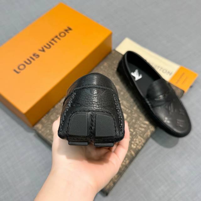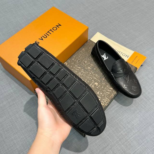 Ouis *Vuitto* 男士豆豆鞋 官网同步 市场顶级版本 牛皮粒纹+黑色牛里 原版包装 。黑色,尺码:38-45。