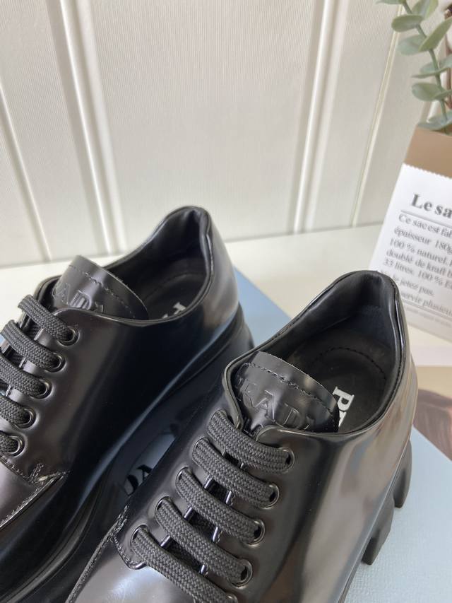 p家顶级品质 今年秋冬大爆款无疑!好看到爆炸 pra众多网红上脚,工作 休闲两不失误,独立风格各处无可挑剔的细节做工。没有吹牛的说,支持专柜验货对比1:1。私家模具大底,鞋底是哑光A级橡胶,内里中间挖空注射发泡材质,所以鞋子看着挺有分量,但拿在手里特别轻巧!不同于市面上纯橡胶的鞋底!市面上的纯橡胶鞋底比原版底省了工序,重量也比原版鞋底重三分之一!
