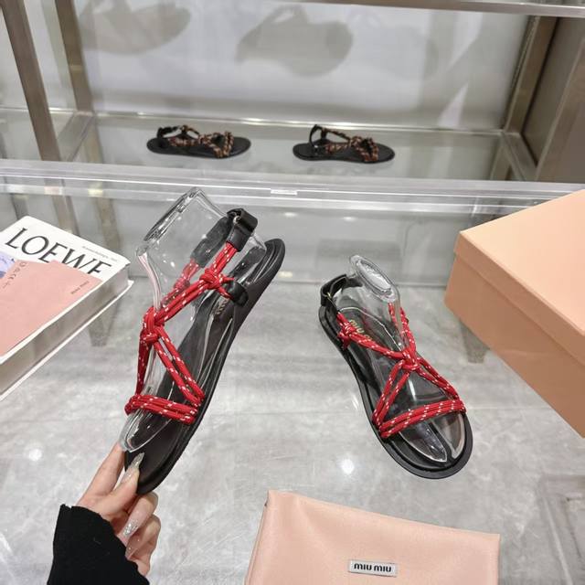 / p250,35-41.Miumiu*缪缪/24夏季新品,全球最火夹趾凉鞋, 出现在各大时装杂志封面·各路明星、小红书博主着用~搭配长裙 鞋面:牛皮 内里:羊皮内
