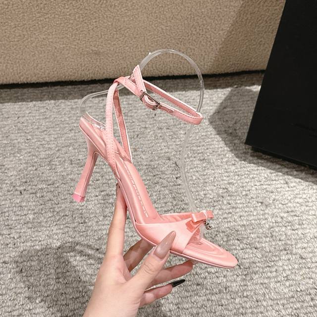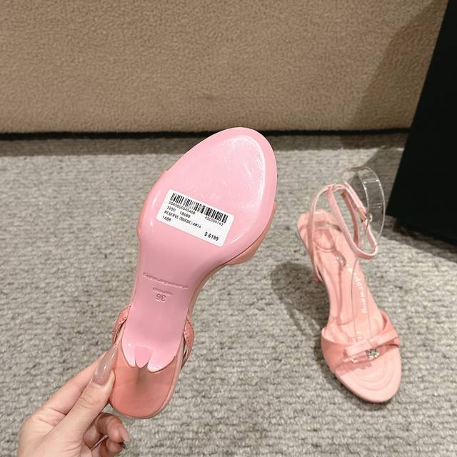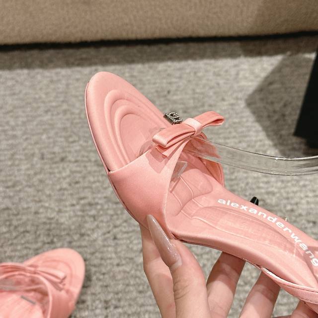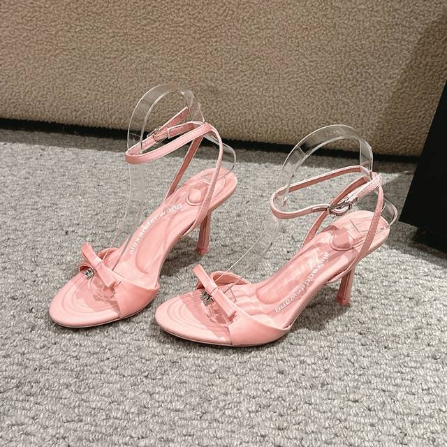 alexander Wang亚历山大王高跟鞋女士奢侈品Alexande* Wang原版1:1的材料,凹凸感带按摩的鞋垫配上注胶 Logo ,搭配最潮圆头+高弹注塑材料,金属水钻饰扣凉鞋。