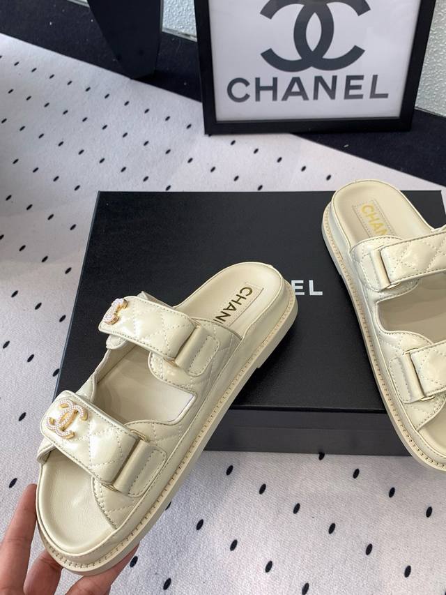 p400拖鞋/P430凉鞋 最新双C扣沙滩鞋. 四季百搭.上脚美极了超级耐看哟 原版定制油蜡牛皮材料 精致小香五金双C钻扣 经典永不过时.代购级别 纯手工菱格