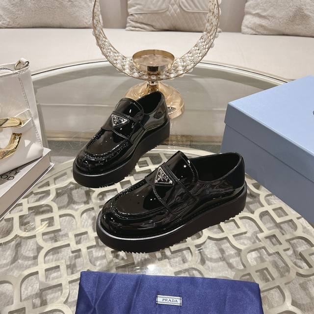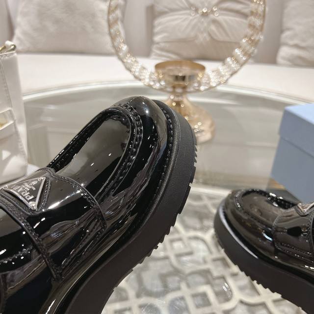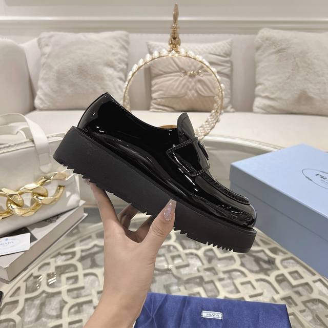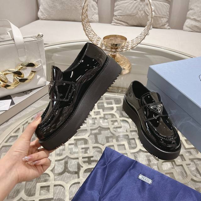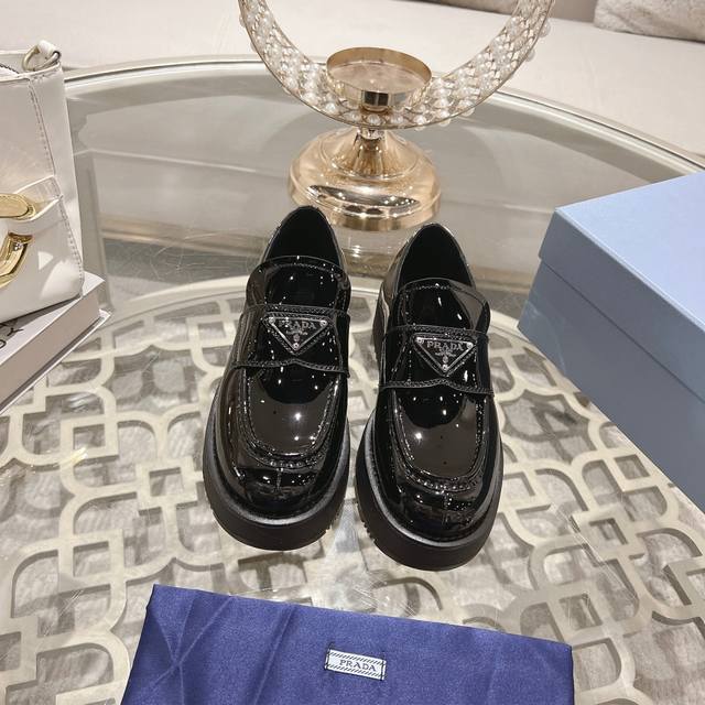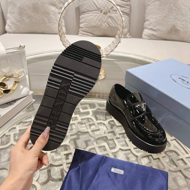 prada新款,原版1比1开发,Tpu真皮组合大底,面料亮面开边珠,漆皮,内里羊皮,码数35至41,普通版 高版本