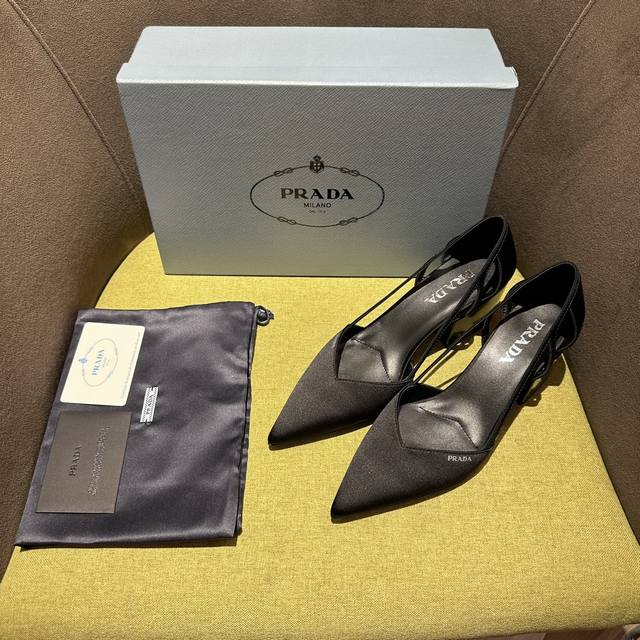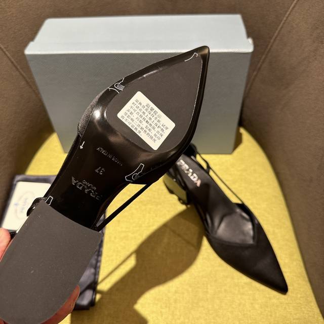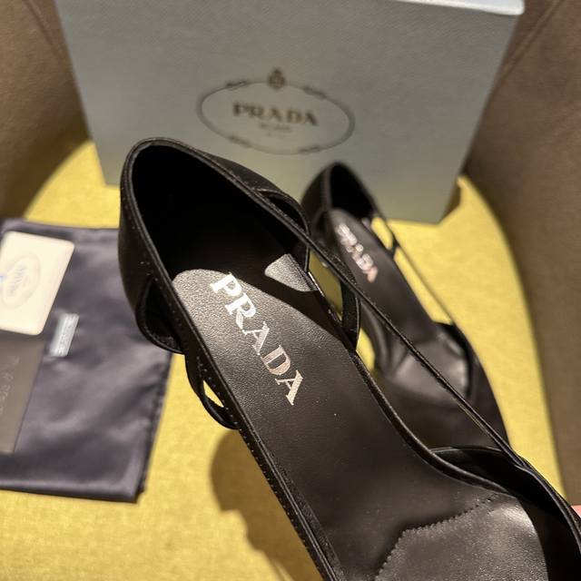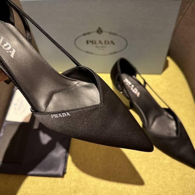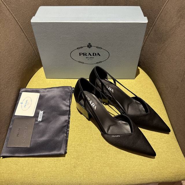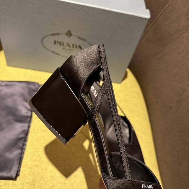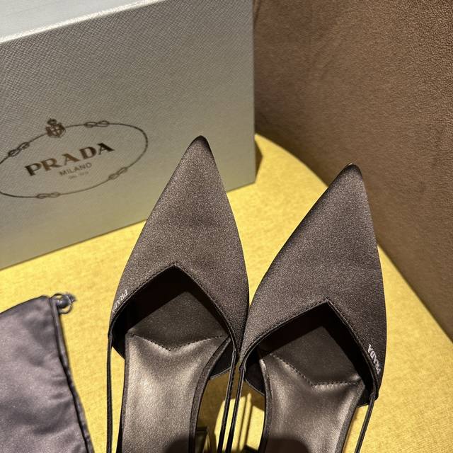 prada普*拉达fw24走秀款 这款缎面高跟鞋融合昔日优雅风格与当代经典元素,以锥形线条与现代主义细节重新演绎 0年代廓形。
