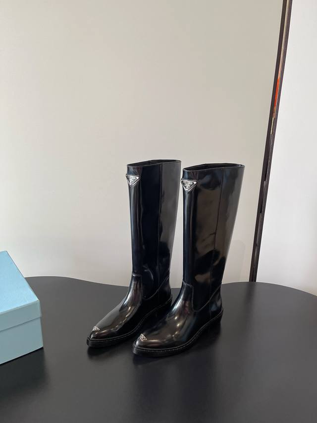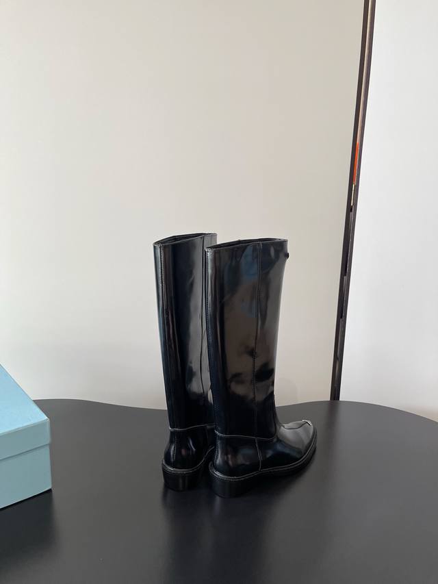 prada 最新尖头 桶靴 厚底机车靴 时尚休闲机车马丁靴 独到味道 人人都爱也轻松驾驭 每年都会爆.还有就是经典的鞋楦 足以征服你 穿上它 增高休闲两不失误