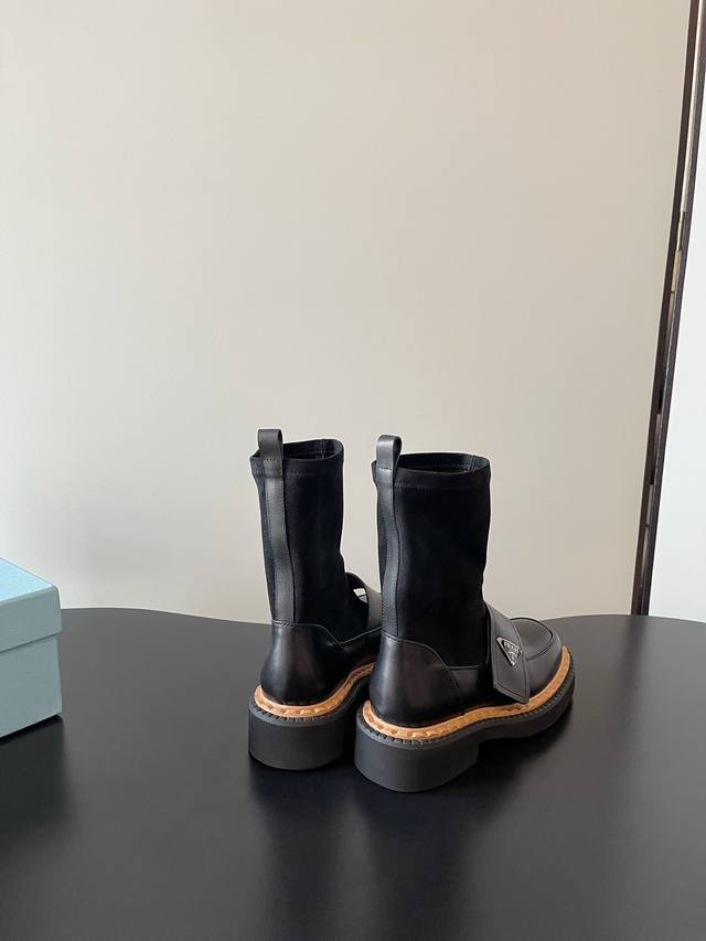 prada 最新弹力 厚底机车靴 包包时尚休闲机车马丁靴 独到味道 人人都爱也轻松驾驭 每年都会爆.还有就是经典的鞋楦 足以征服你 穿上它 增高休闲两不失误 脚