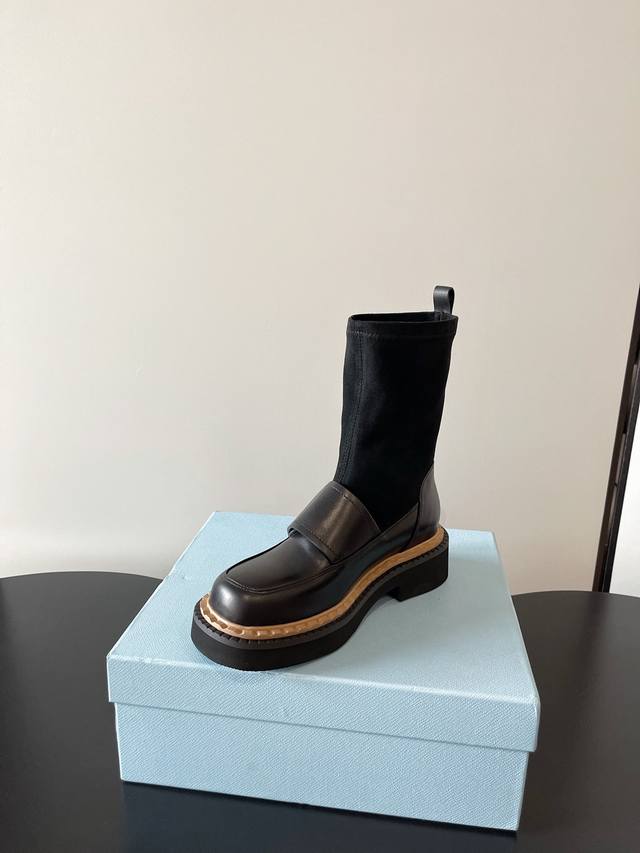 / prada 最新弹力 厚底机车靴 包包时尚休闲机车马丁靴 独到味道 人人都爱也轻松驾驭 每年都会爆.还有就是经典的鞋楦 足以征服你 穿上它 增高休闲两不失误 脚
