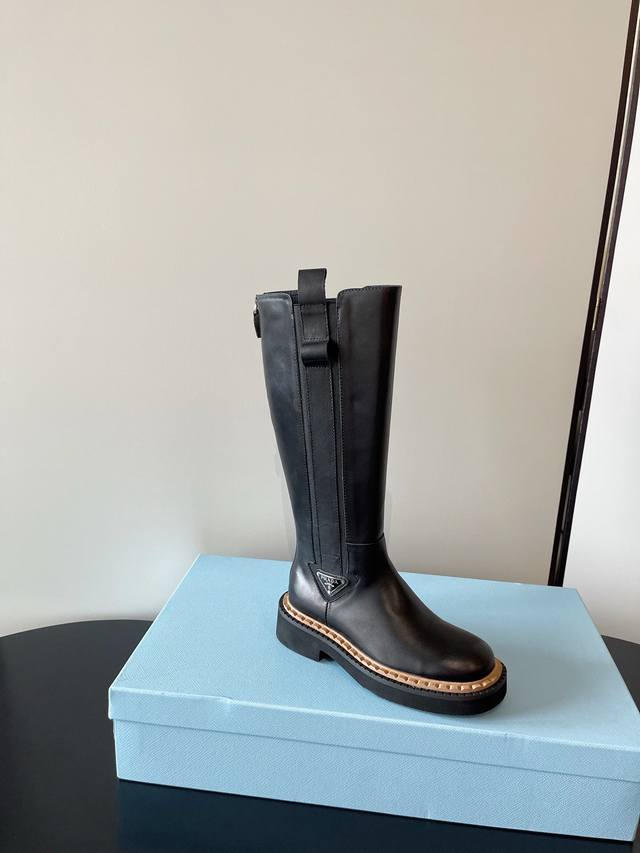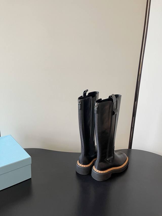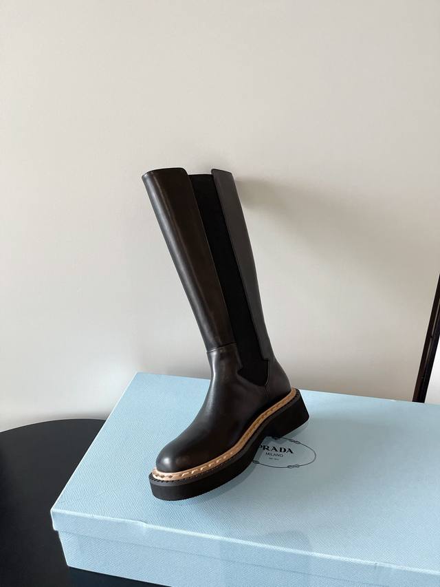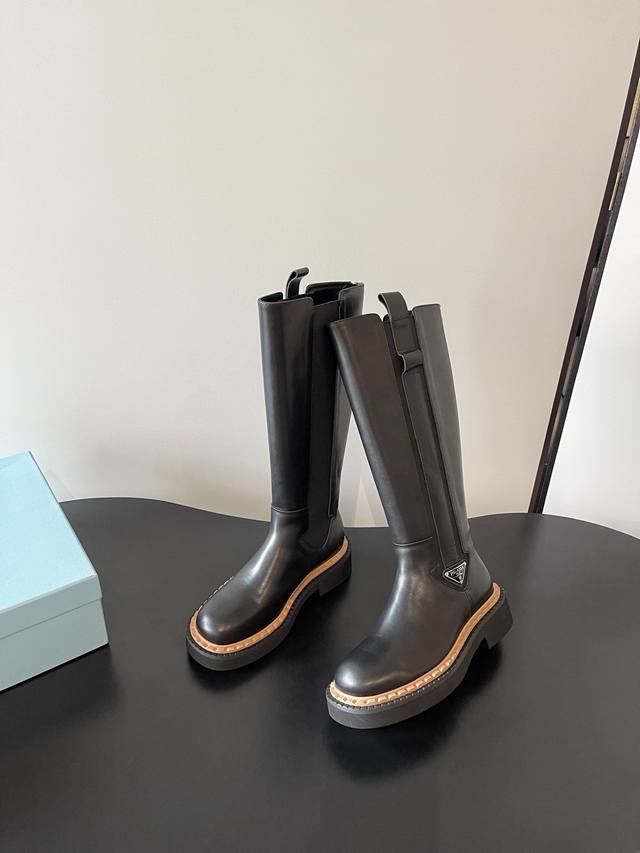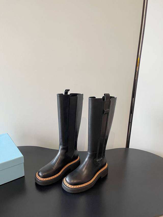 / prada 最新松紧厚底机车靴 时尚休闲机车马丁靴 独到味道 人人都爱也轻松驾驭 每年都会爆.还有就是经典的鞋楦 足以征服你 穿上它 增高休闲两不失误 脚简单帅