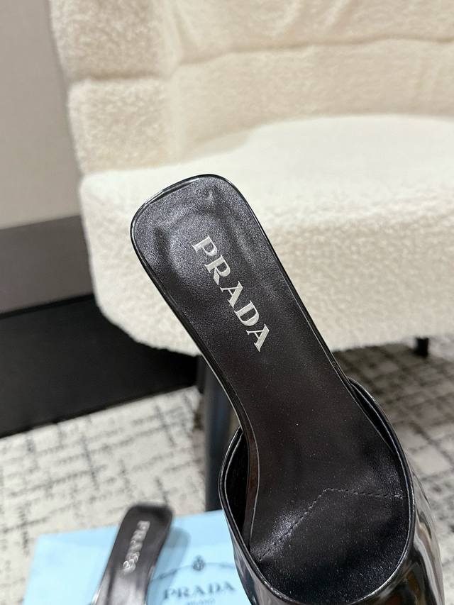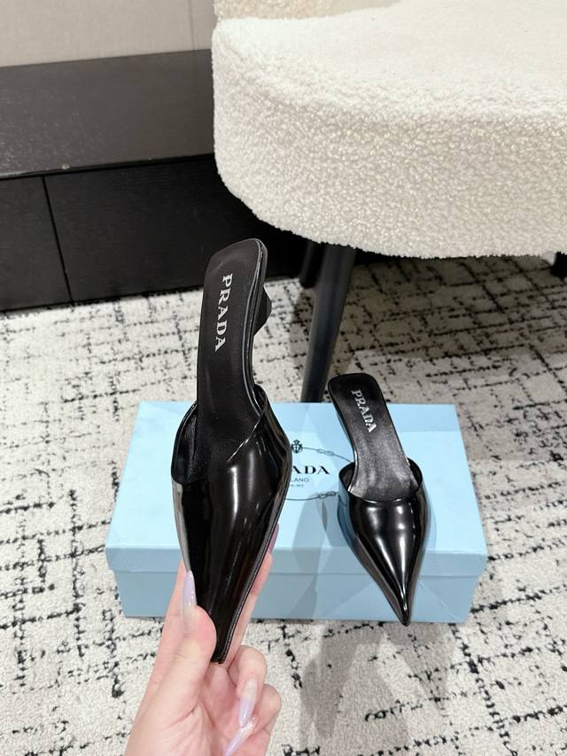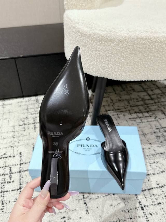 prada 25 走秀款缎面尖头三角跟高跟鞋