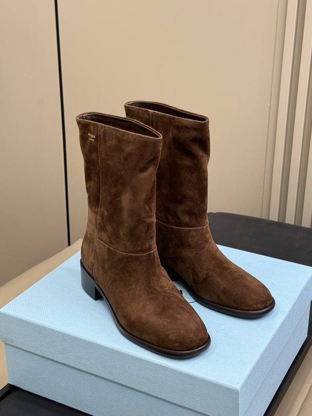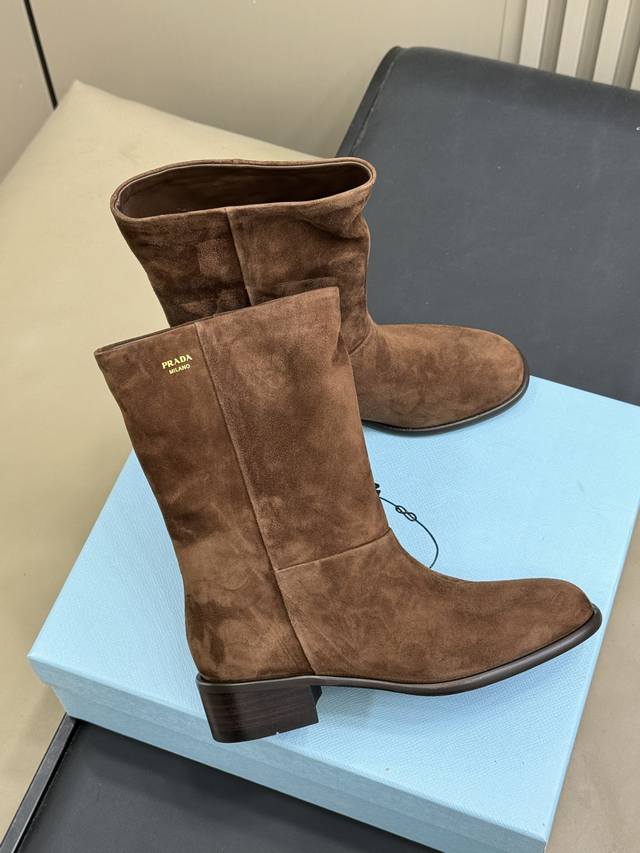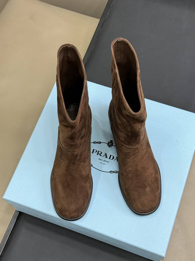 prada Fw25 New Arrival~ p家25秋冬短靴新品 麂皮和秋冬完美契合,柔和美丽 鞋底意大利进口牛皮底组合橡胶底,好穿耐穿! Size 35-