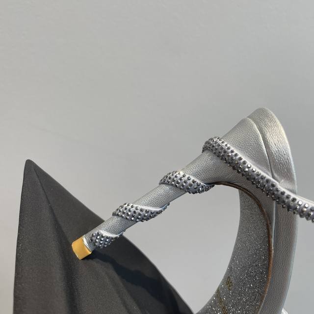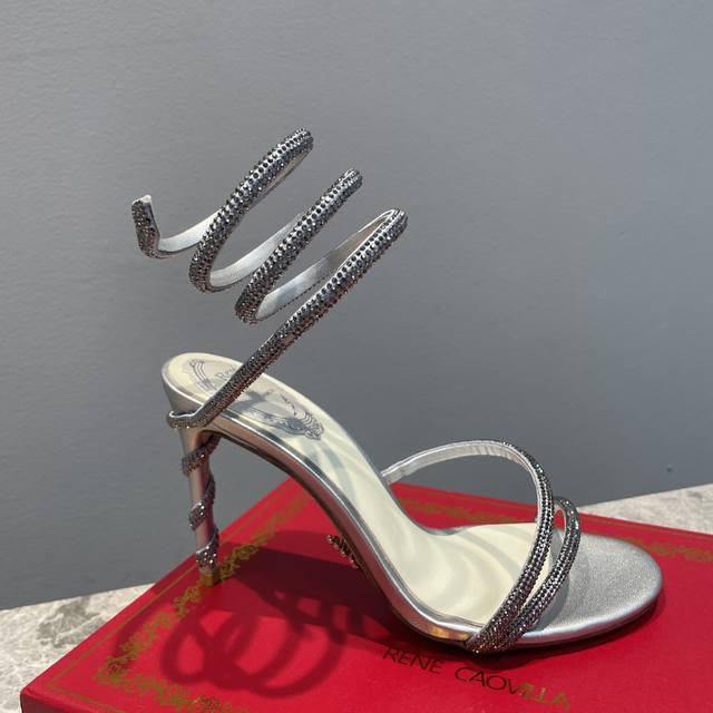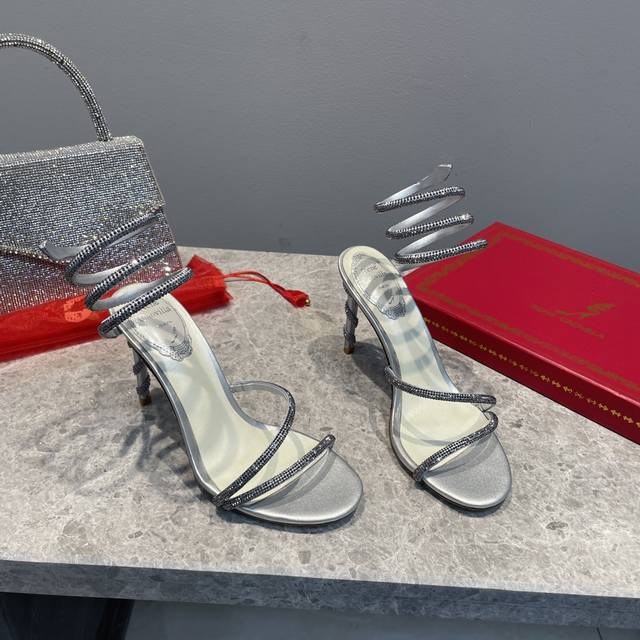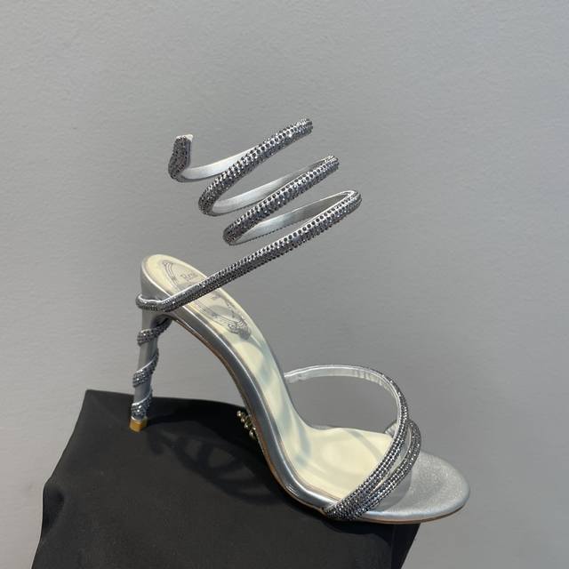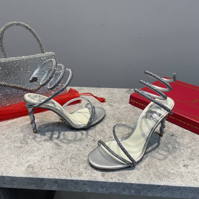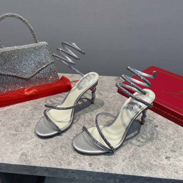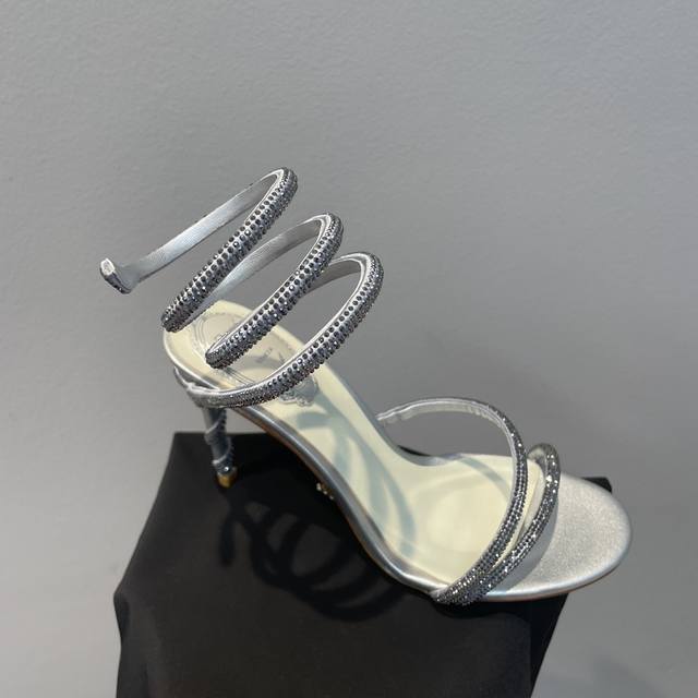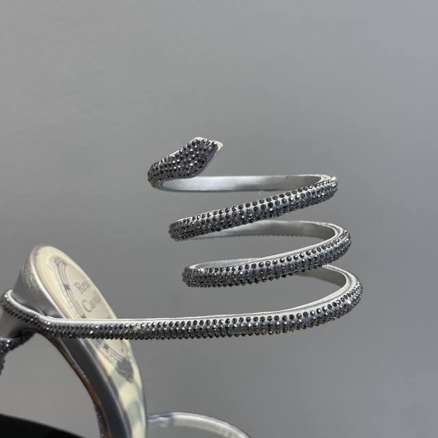 R C 重工rc蛇形爆红cleo系列,水晶缠绕脚环高跟凉鞋。简约却暗藏玄机,一点点灯光,整个鞋面波光粼粼,熠熠生辉。无论是在温暖热闹的派对,还是昏暗暧昧的场合,都轻松拿捏