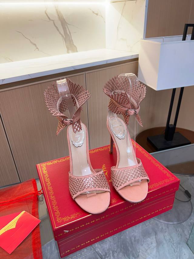 Rene Caovilla芮妮 乔薇拉 Rc最新高跟凉鞋,重工rc水晶钻eⅠⅰzabth系列,满钻镂空款 镭射切割网眼麂皮鞋面缀以同色系水晶,展现闪耀魅力 柔美妩媚性感 水钻嵌刻鞋面 独一无二的设计 女士露趾高跟鞋