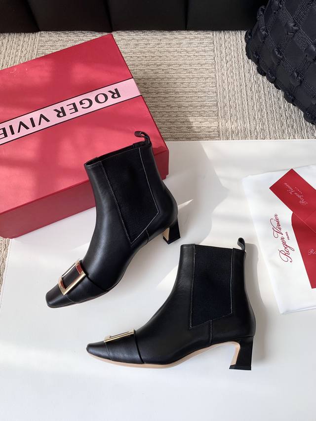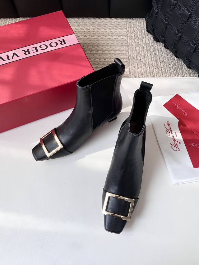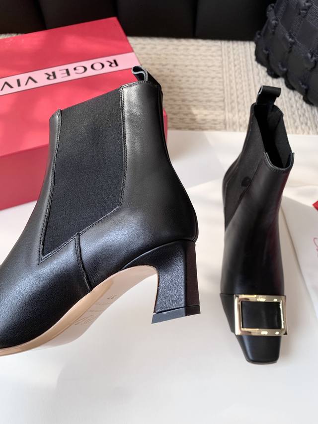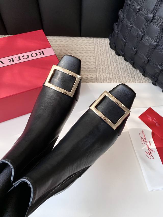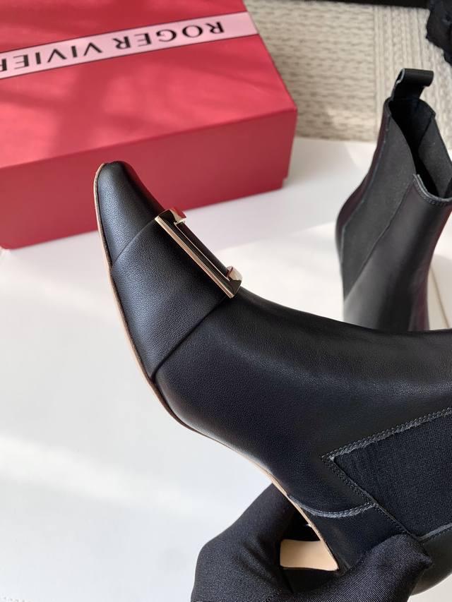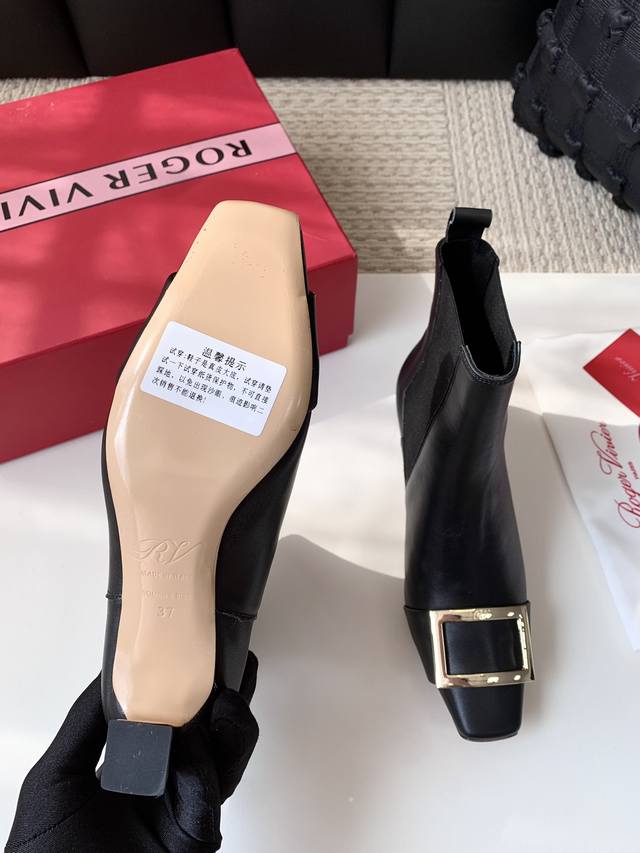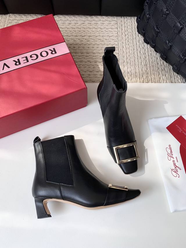 / Roger Vivie* 经典方扣切尔西粗跟短靴 好货 长期款 鞋面原版头层小牛皮羊反绒皮 两侧松紧弹力切尔西一脚蹬 轻松上脚,好货看细节实拍,原版开模Rv五金