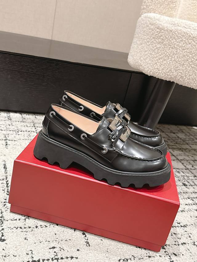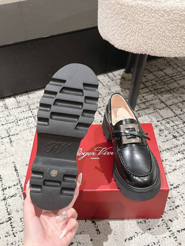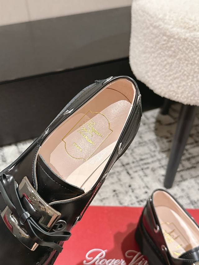 Roger Vivier新款Rv一脚蹬钻扣 方扣乐福鞋小皮鞋单鞋 鞋面:牛漆皮 牛皮, 內里:羊皮 大底:原版大底 跟高:4.5Cm Size:35-39 40