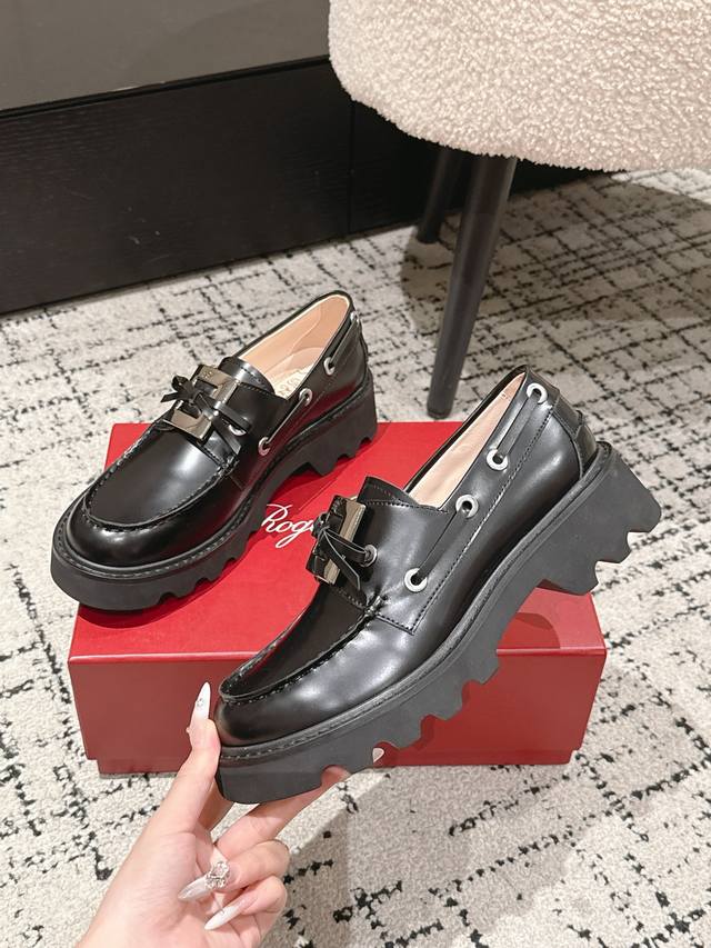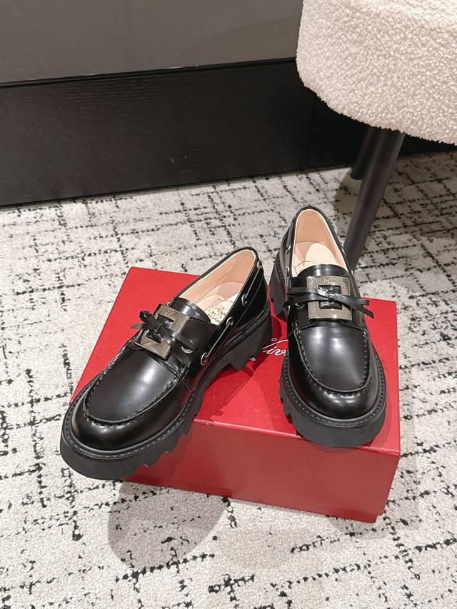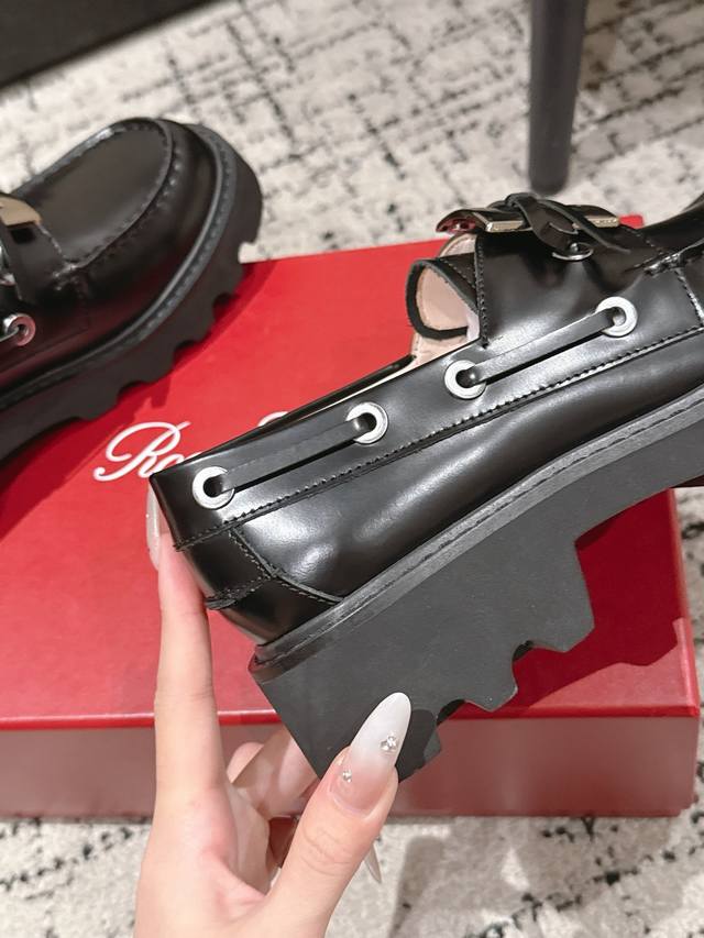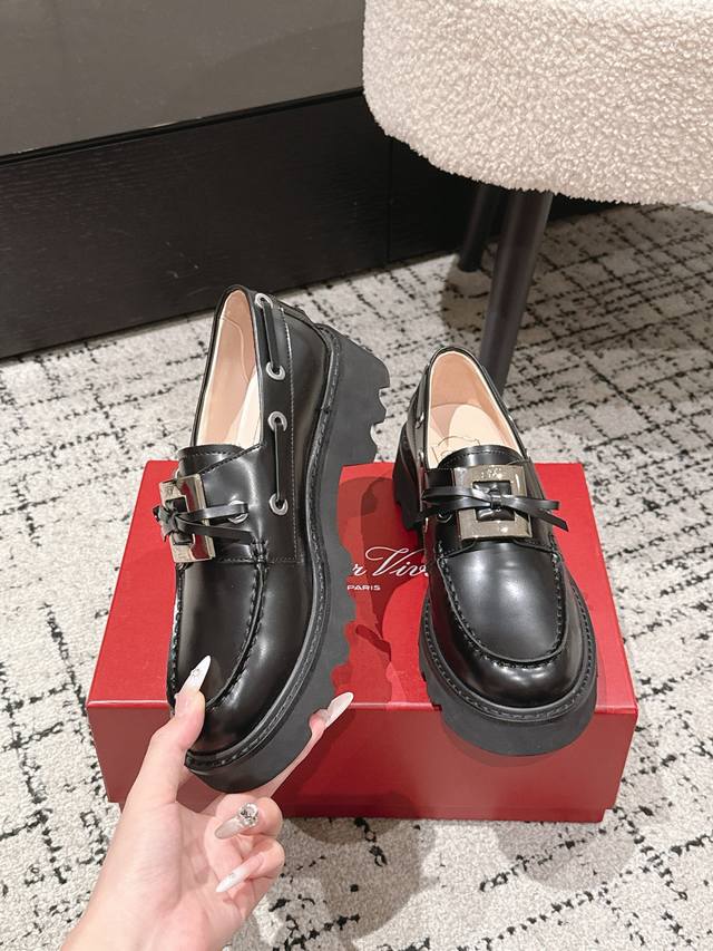 Roger Vivier新款Rv一脚蹬钻扣 方扣乐福鞋小皮鞋单鞋