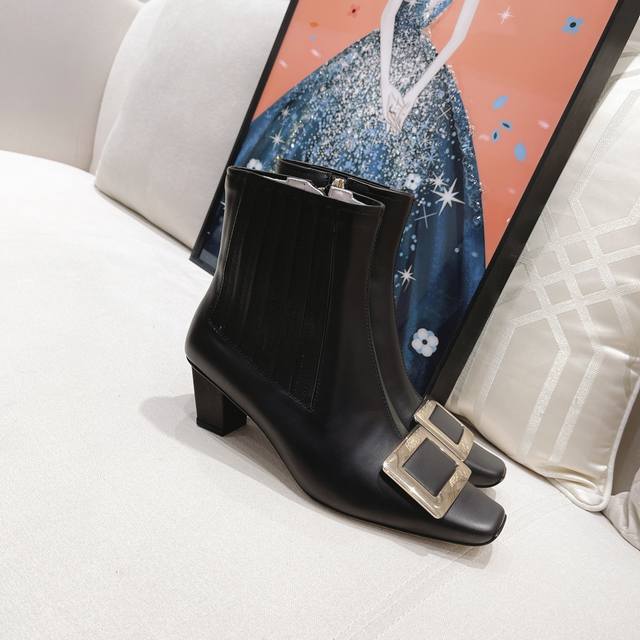 roger Vivier秋冬新款 Belle Vivier金属扣小羊皮切尔西靴