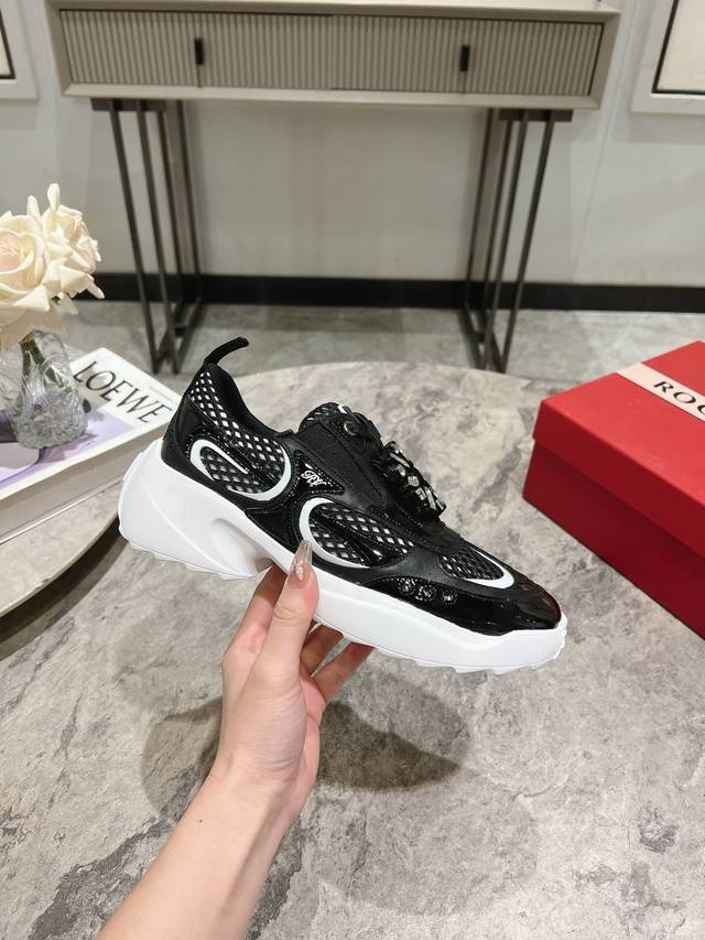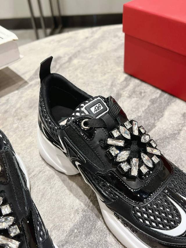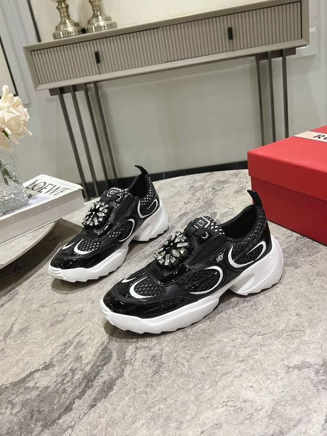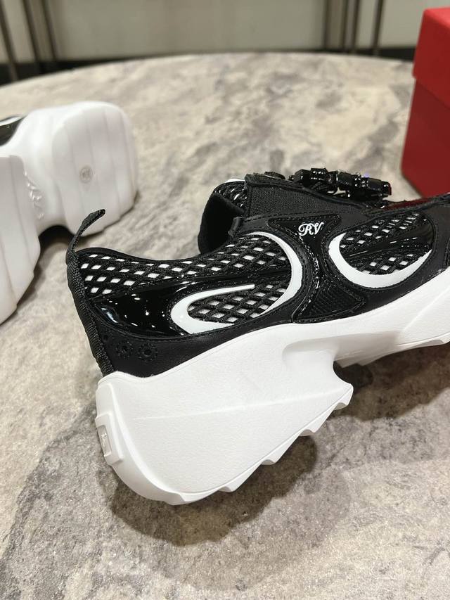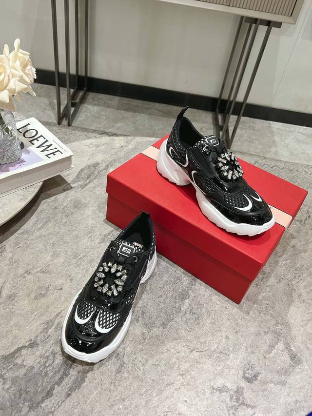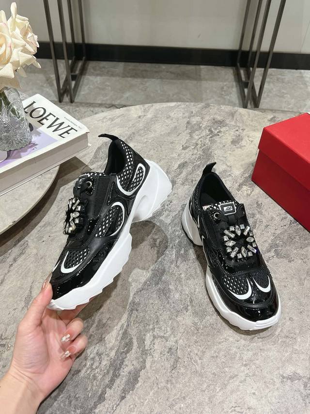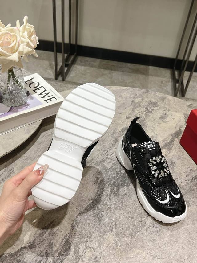 Roger Vivier 新款 Rv女鞋viv Motor皮革拼织物休闲鞋