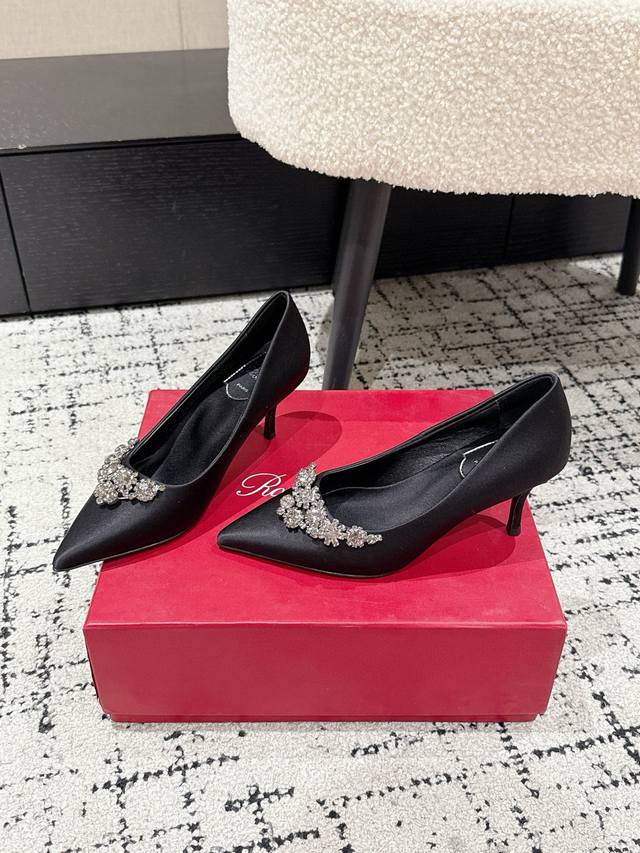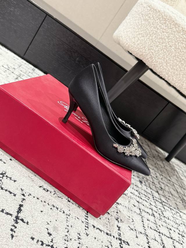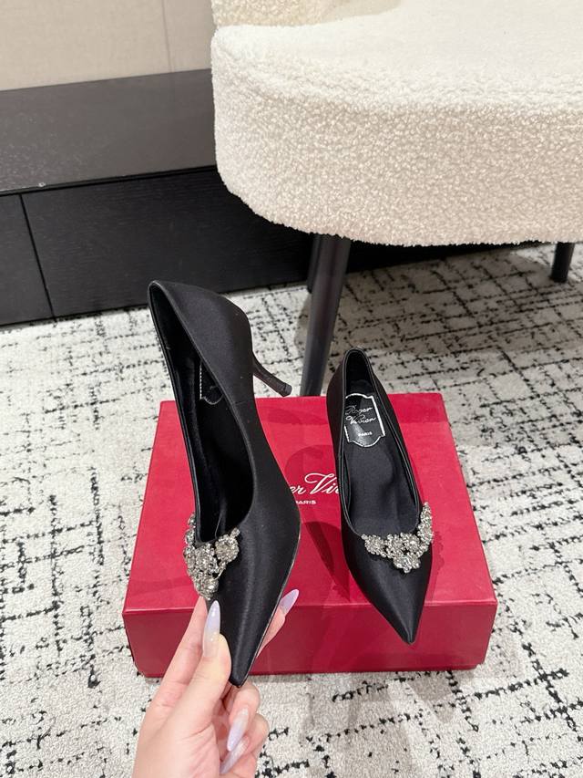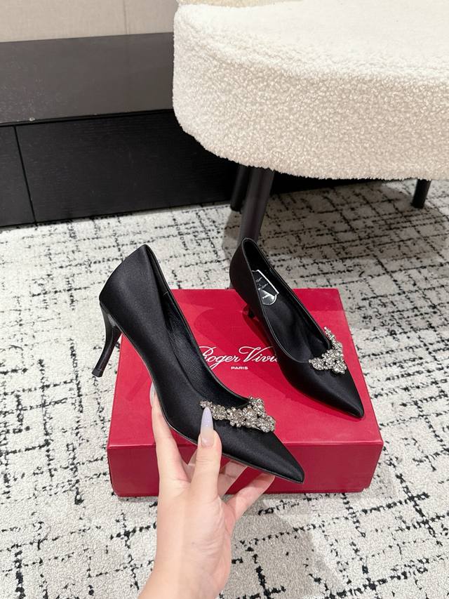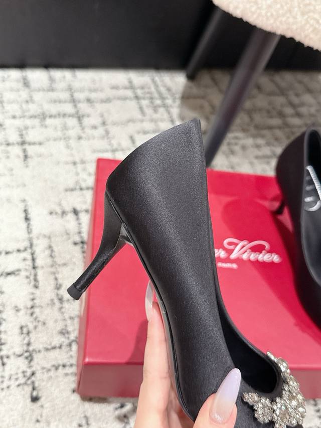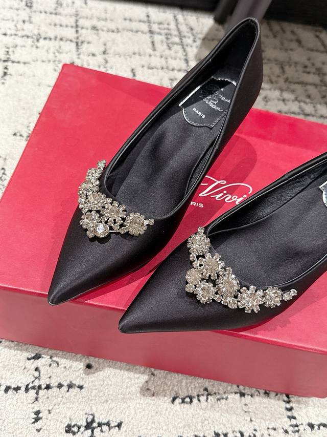 Roger Vivier 25 Ss Rv 新款绸缎水钻半拖