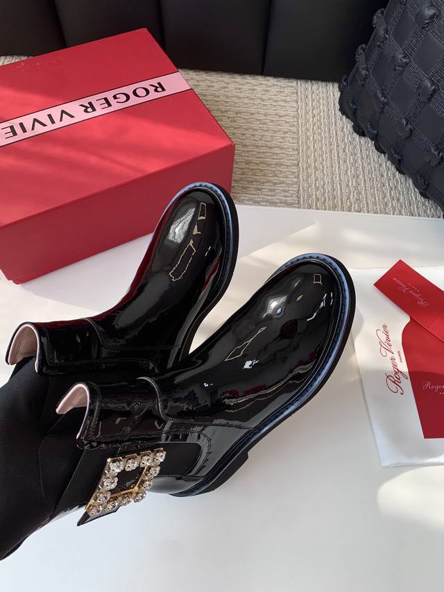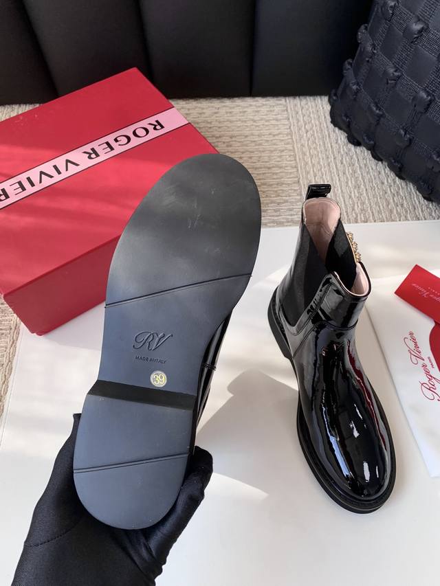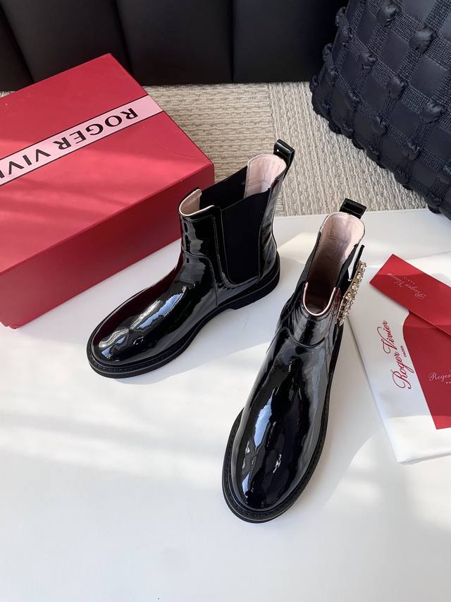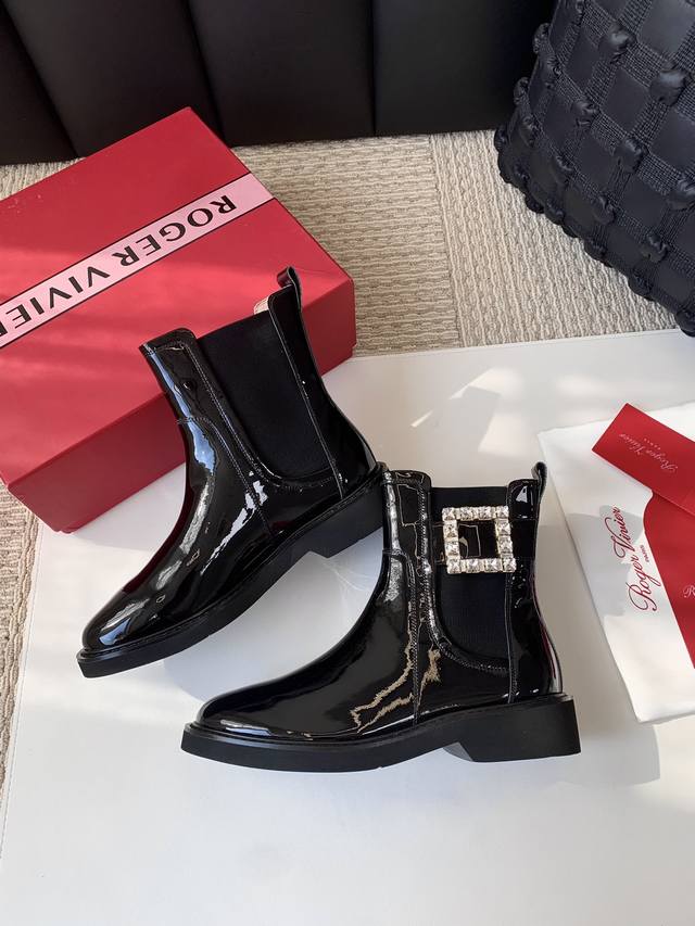 鞋面头层小牛皮配光面扣牛漆皮配水晶钻扣,超有质感 透亮,两侧弹力切尔西一脚蹬,看细节实拍认品质,大厂做工 整齐车线工艺!