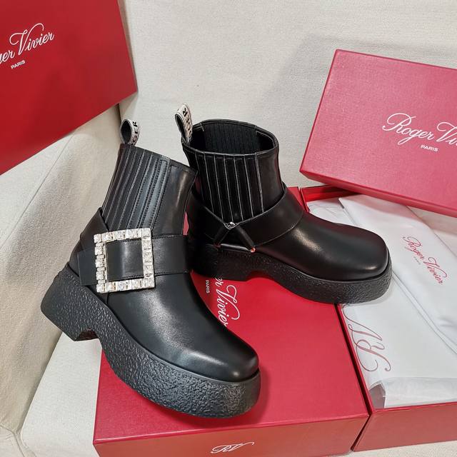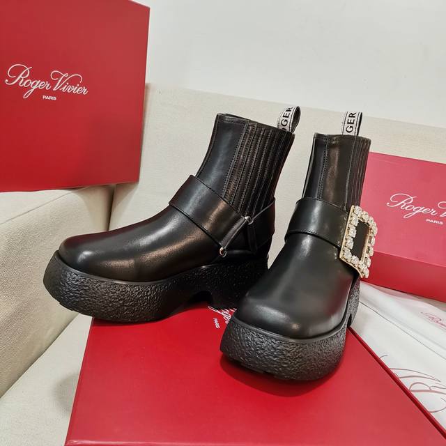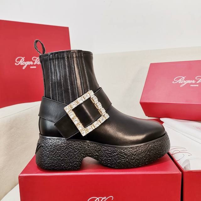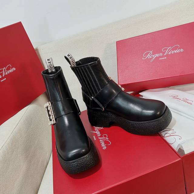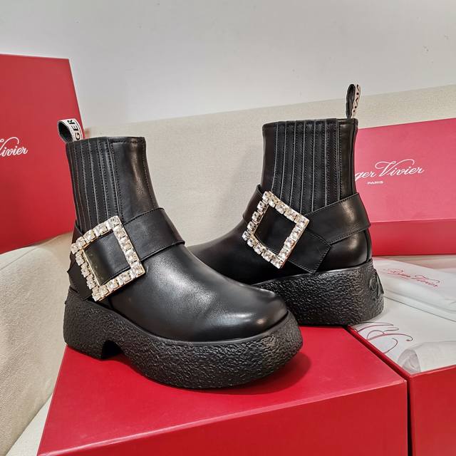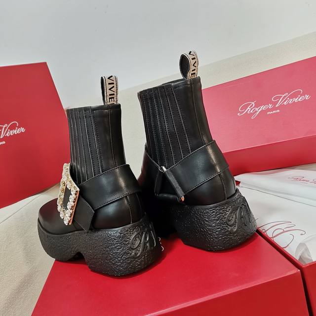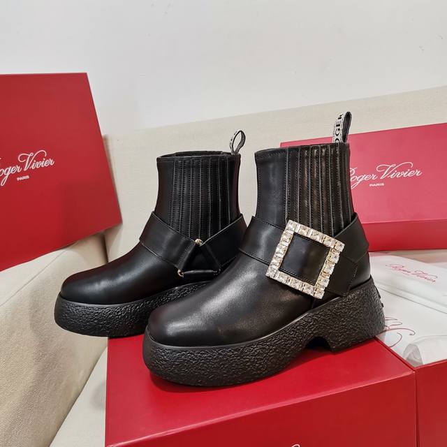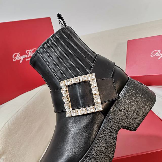 / Rv25秋冬新款短靴,靴子实用又时尚,一直是提升造型的优选单品。本款皮靴以牛皮手工制成,点缀品牌钻扣,粗高跟设计平稳又尽显挺拔身姿。在酷帅个性的基础上增添维维亚