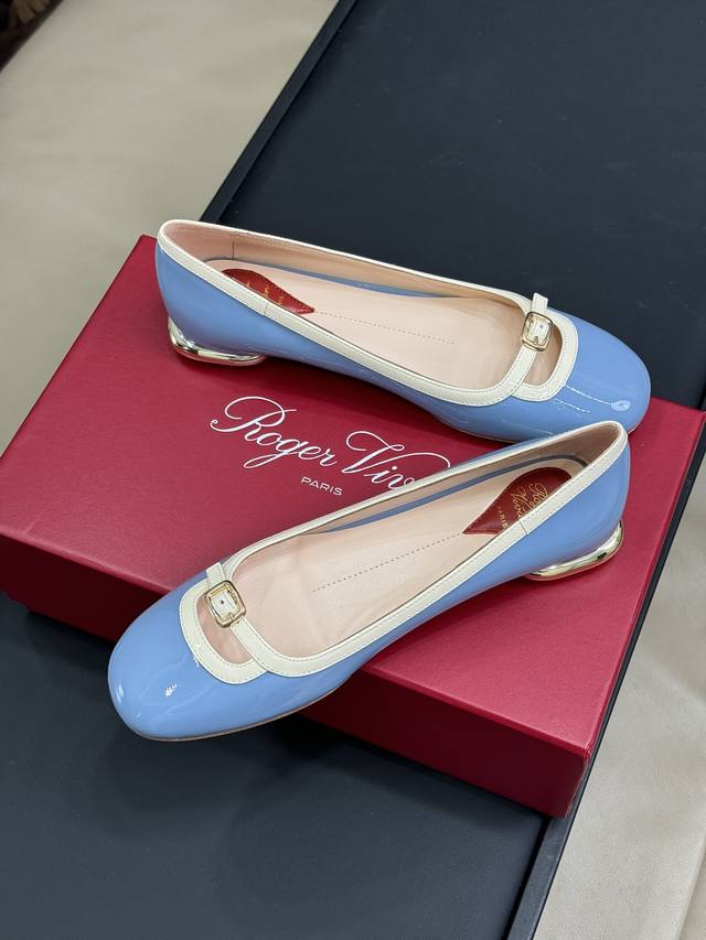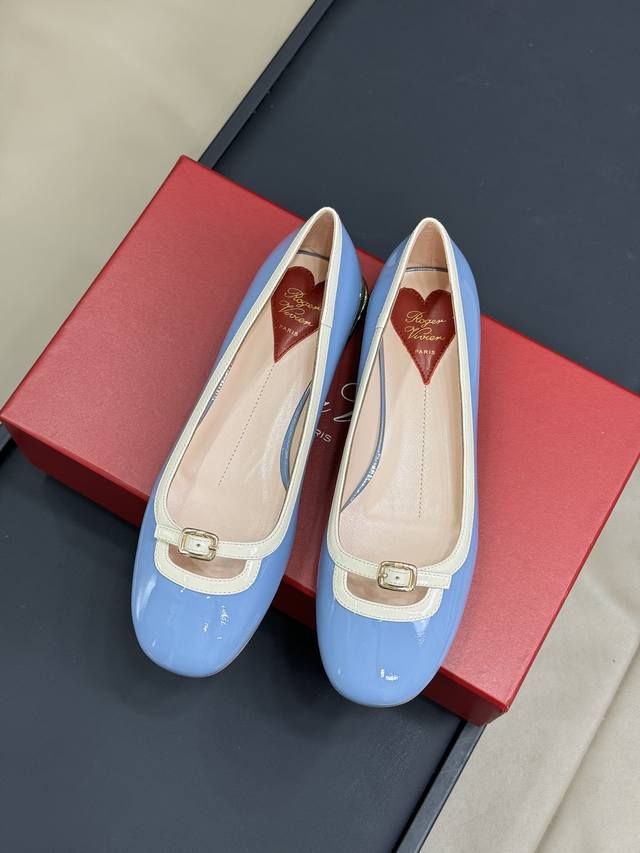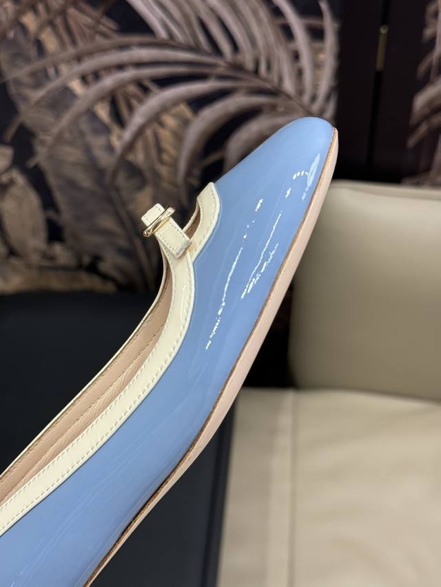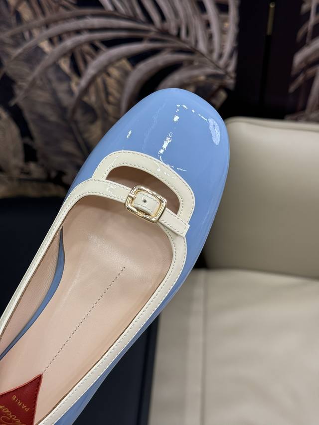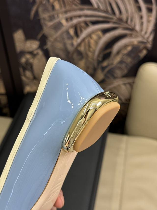 品牌代表作viv’Choc饰扣精巧别致,像一枚戒指点缀在这款芭蕾舞鞋上。漆皮制成,圆头设计,鞋面小开口点缀迷你饰扣,优雅又舒适,让你全天都从容自在。