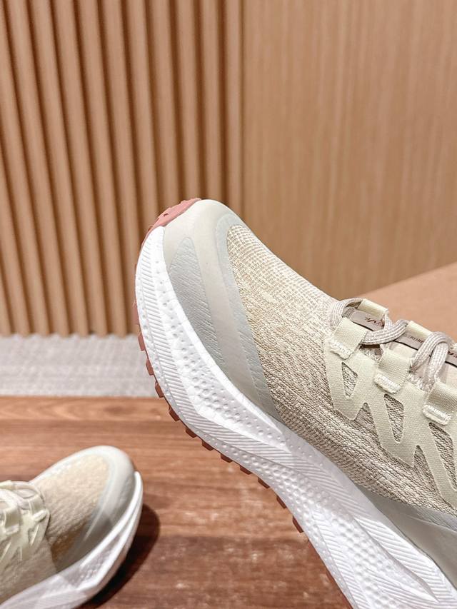 软+轻颜色适合春天跑后,升级底面适应的路况更广泛,比如突然想爬山越野直接上Ok的,当然对路跑来说限制就变得更少了,厚度适中支撑很稳定,半袜套设计包裹感很好,贴合脚的形状。后脚跟被很好的固定佳,就能带来更多安全感。后侧到前侧网面是过渡式的厚到薄。和家人朋友一起出门踏青就是很好的选择!想起来跑两步,也可以在草地上,时间长也不会累脚。