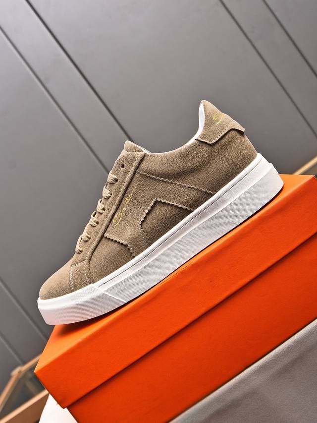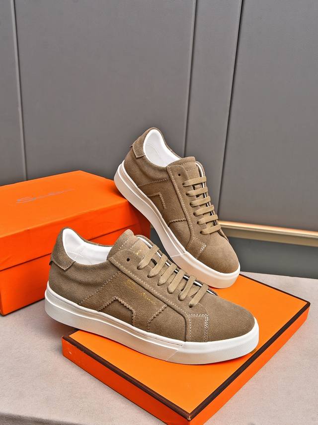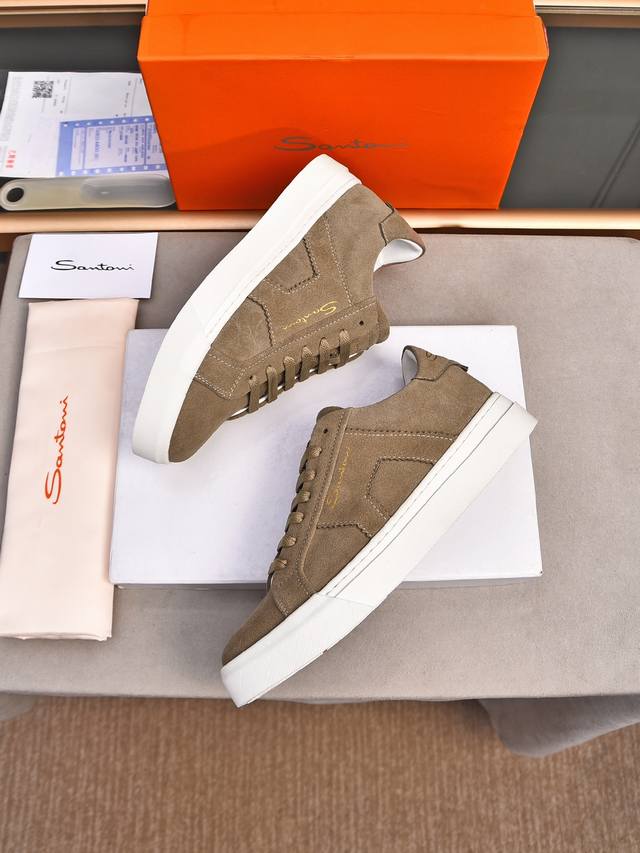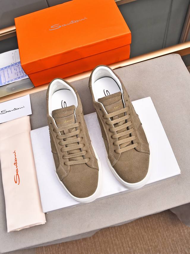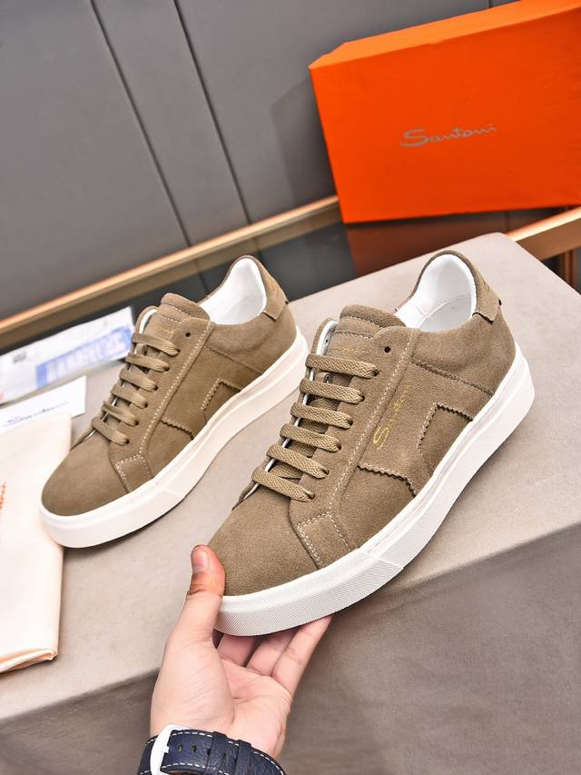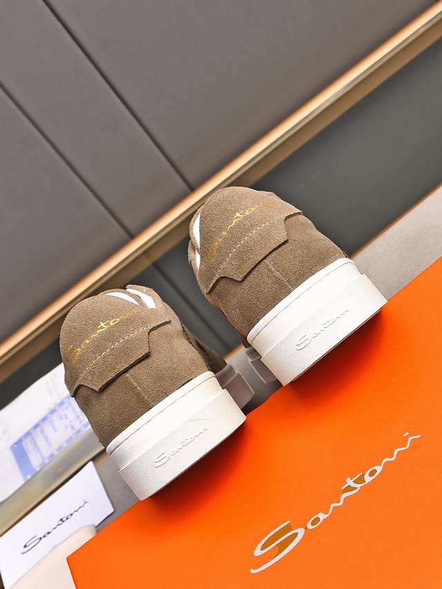 Santoni 圣东尼 意大利男士手工小牛皮休闲鞋出货!这个意大利纯手工鞋履品牌的每一双鞋设计简洁经典,上脚非常舒适百搭! 用“新贵”来形容意大利鞋履品牌santoni, 鞋子鞋头部位采用经典的两节设计理念,即环保又不开胶! 此款鞋面面料原厂飞织加进口磨砂皮,大底采用ip大底加tpu底片组合成型,上脚轻便舒适!长期有货! 尺码:39 40 41 42 43 44 45定做 标准皮鞋码
