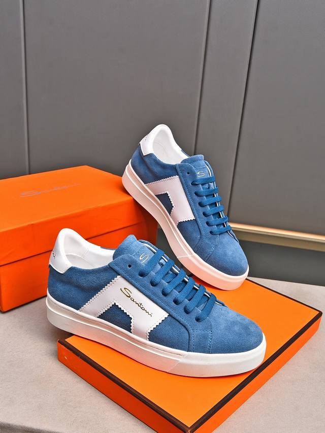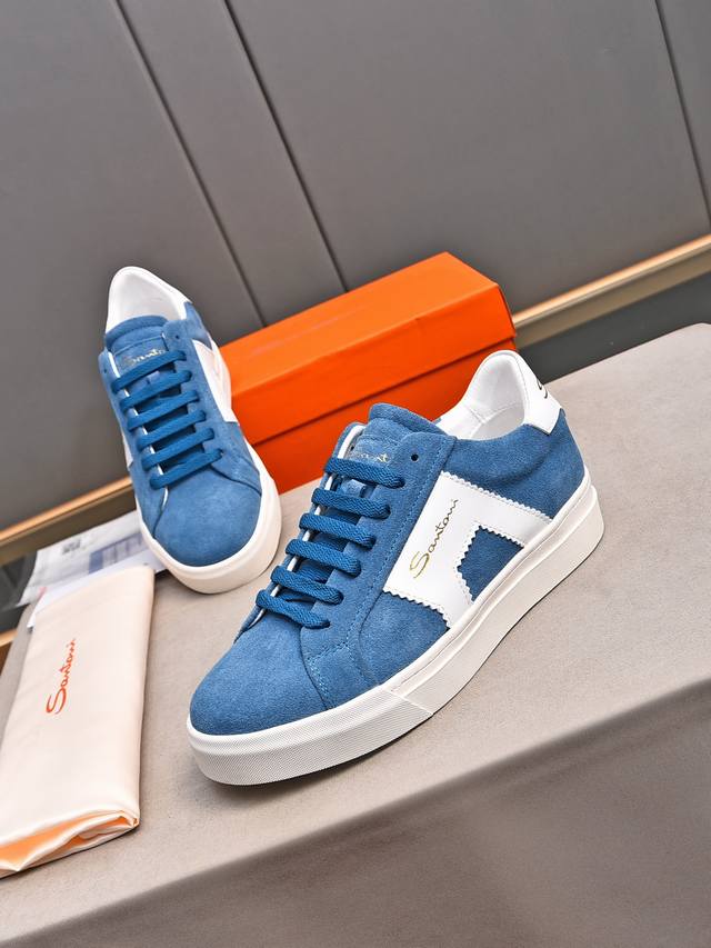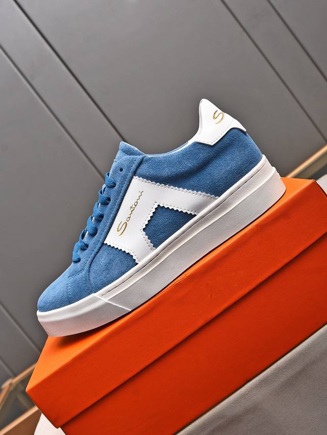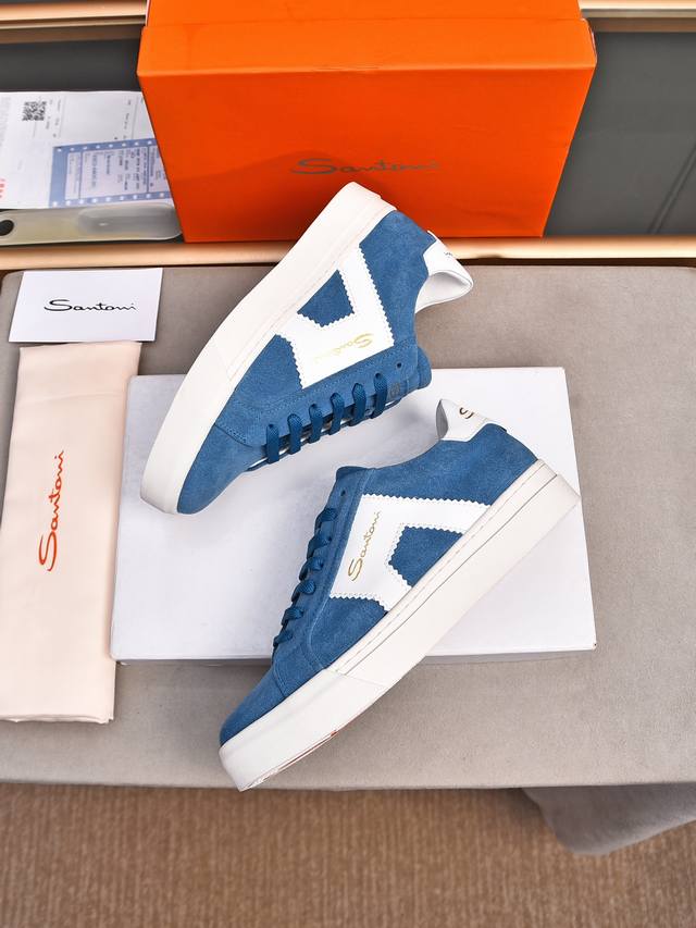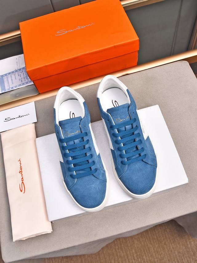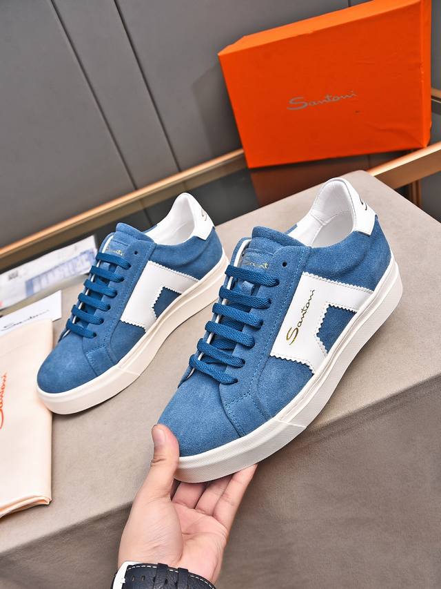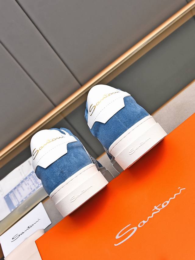 Santoni 圣东尼 意大利男士手工小牛皮休闲鞋出货!这个意大利纯手工鞋履品牌的每一双鞋设计简洁经典,上脚非常舒适百搭! 用“新贵”来形容意大利鞋履品牌santoni, 鞋子鞋头部位采用经典的两节设计理念,即环保又不开胶! 此款鞋面面料原厂飞织加进口磨砂皮,大底采用ip大底加tpu底片组合成型,上脚轻便舒适!长期有货! 尺码:39 40 41 42 43 44 45定做 标准皮鞋码