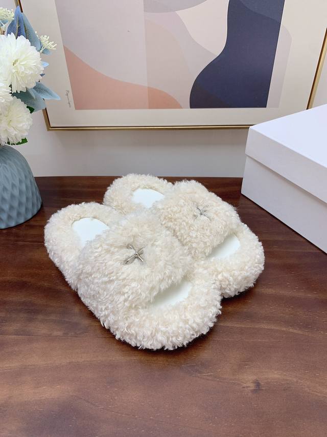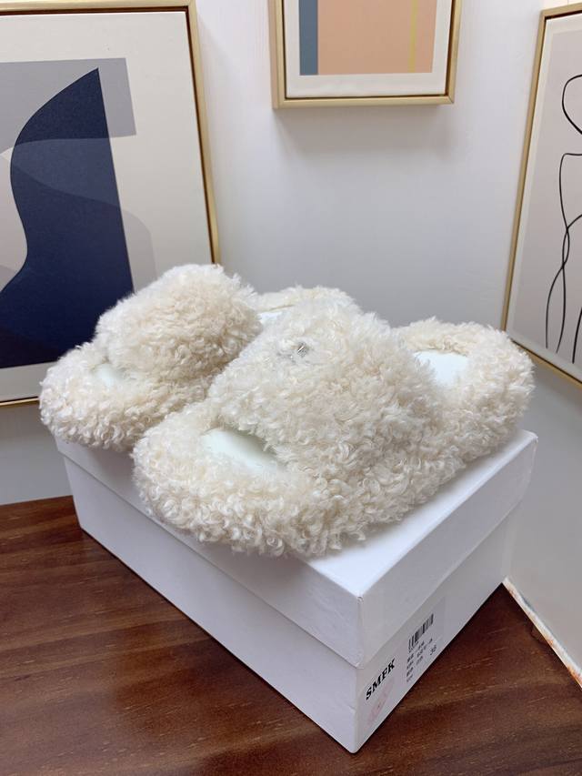 smfk经典毛拖系列。出厂价 有点野性有点个性,这一季的smfk真的让人心动不已,十字架毛拖简直直击内心! 超级炫酷,家人们快get起来 鞋面采用高密度真羊毛,