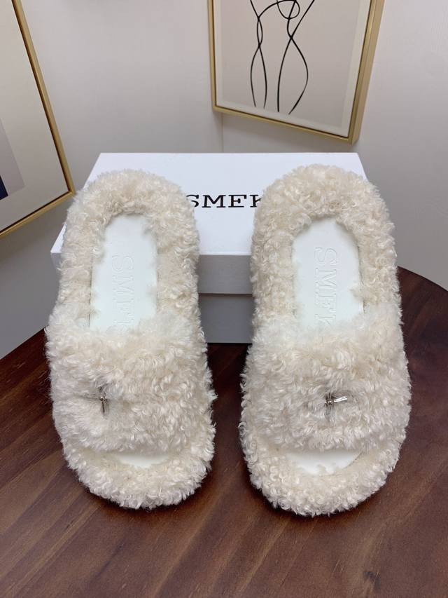 / smfk经典毛拖系列。出厂价 有点野性有点个性,这一季的smfk真的让人心动不已,十字架毛拖简直直击内心! 超级炫酷,家人们快get起来 鞋面采用高密度真羊毛,