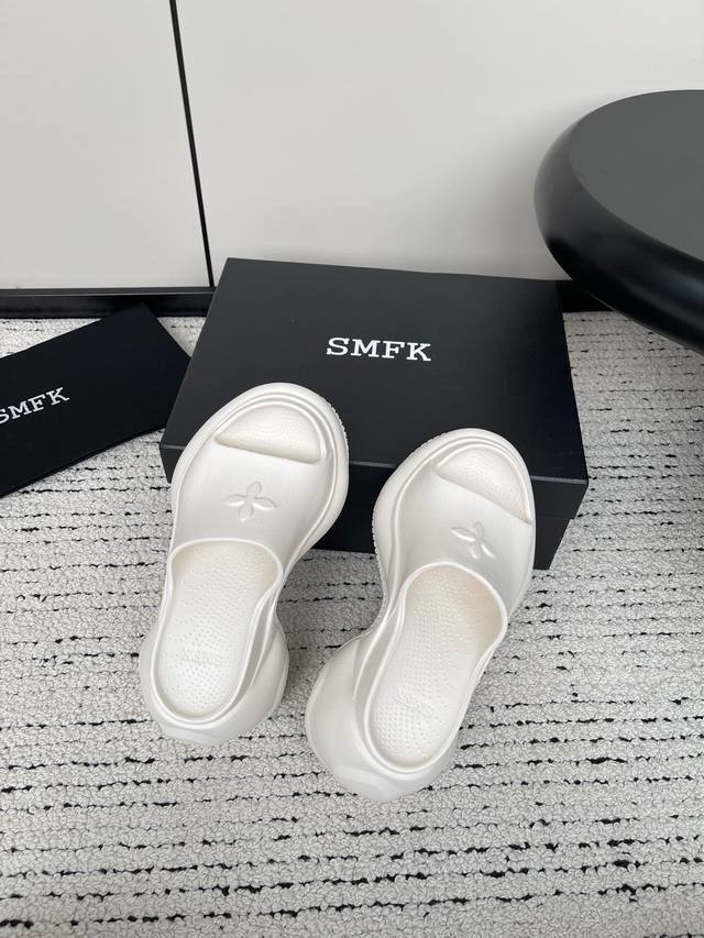 smfk 24Ss 小众潮牌爆款没计感浮雕一字厚底拖鞋
