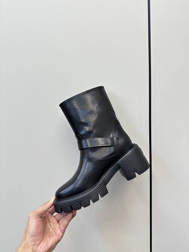 厚底跟高约6.5Cm,质感轻盈且舒适贴合腿型,引人瞩目的粗扩廓形设计搭配一系列材质,令您的每一步均尽显时尚、功能性及影响力。