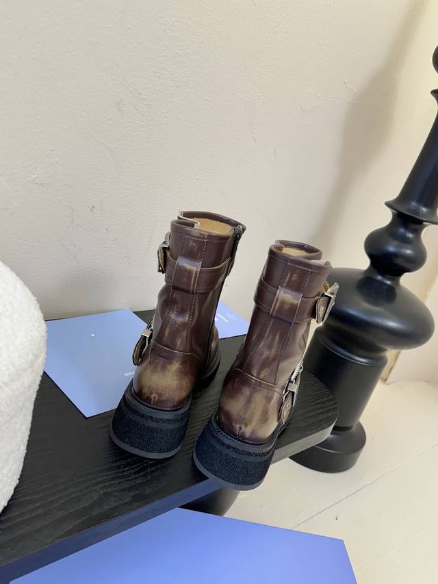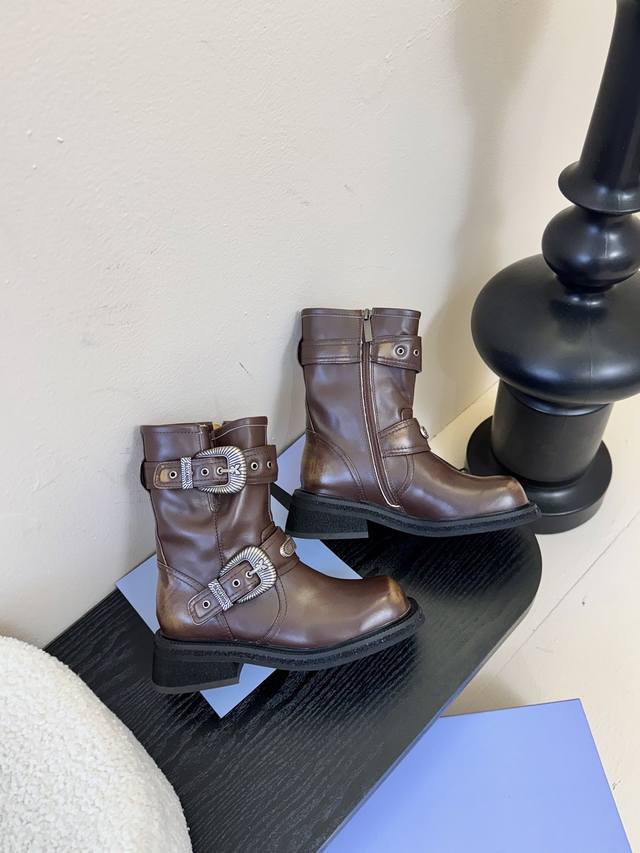 一眼惊艳的复古骑士靴,自由与弥野随性氛围拉满 有型!鞋面采用定制擦色牛皮,气质复古亦叛逆,侧面搭配骑士风金属扣装饰,厚底耐磨绒,增高不增重,造型简洁有力,甜酷自我,不羁浪漫!