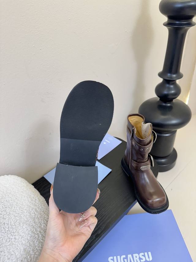 Sugarsu 弥野系列 复古擦色骑士中靴