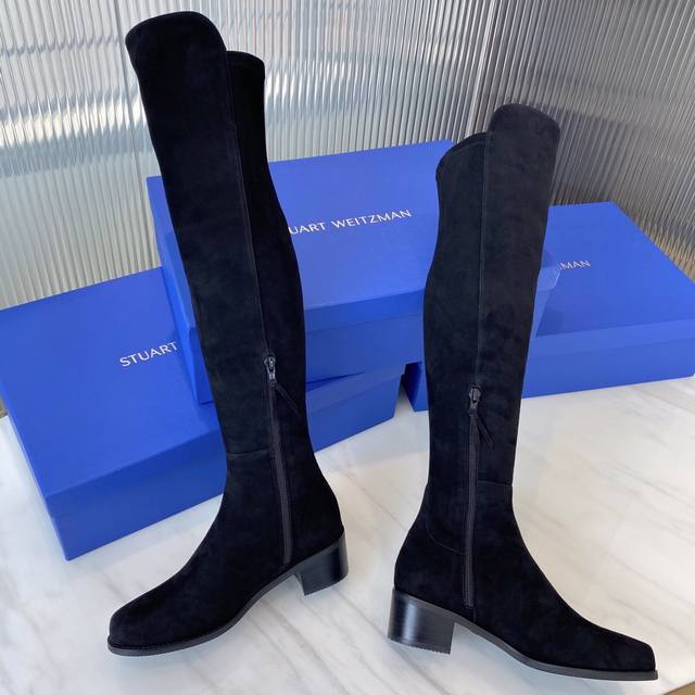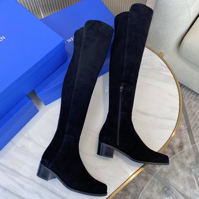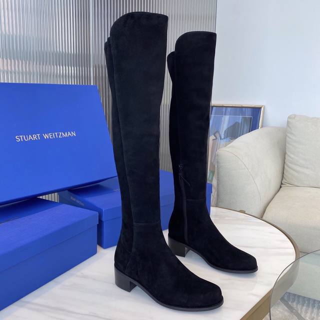 Sw Allserve经典4.5Cm侧拉链及膝弹力靴 材质与工艺: 进口原版羊猄+弹力羊京面料 原版定制羊皮内里 独家原版开模tpu耐磨大底 Size:35-4