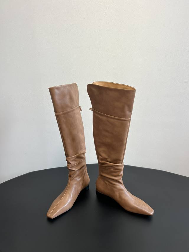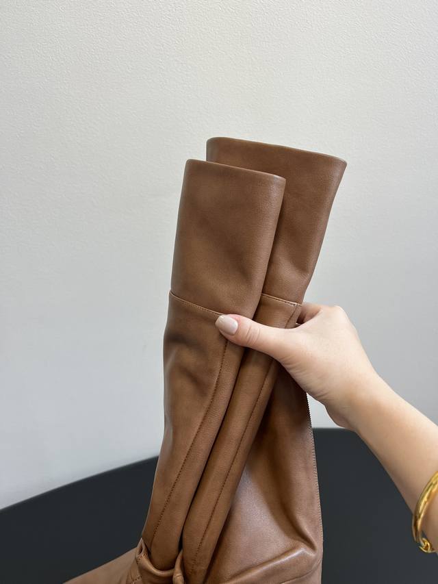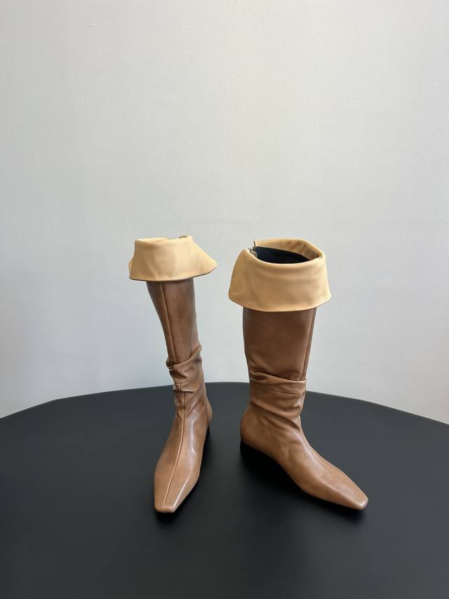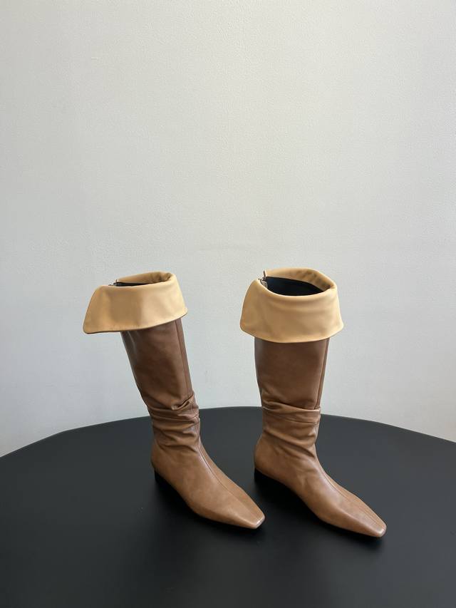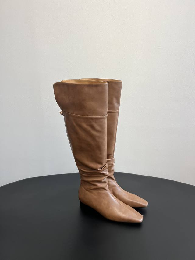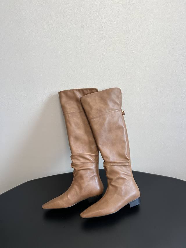 The Row极简天花板切尔西靴复古小褶皱高靴