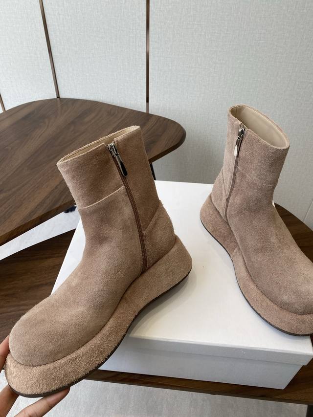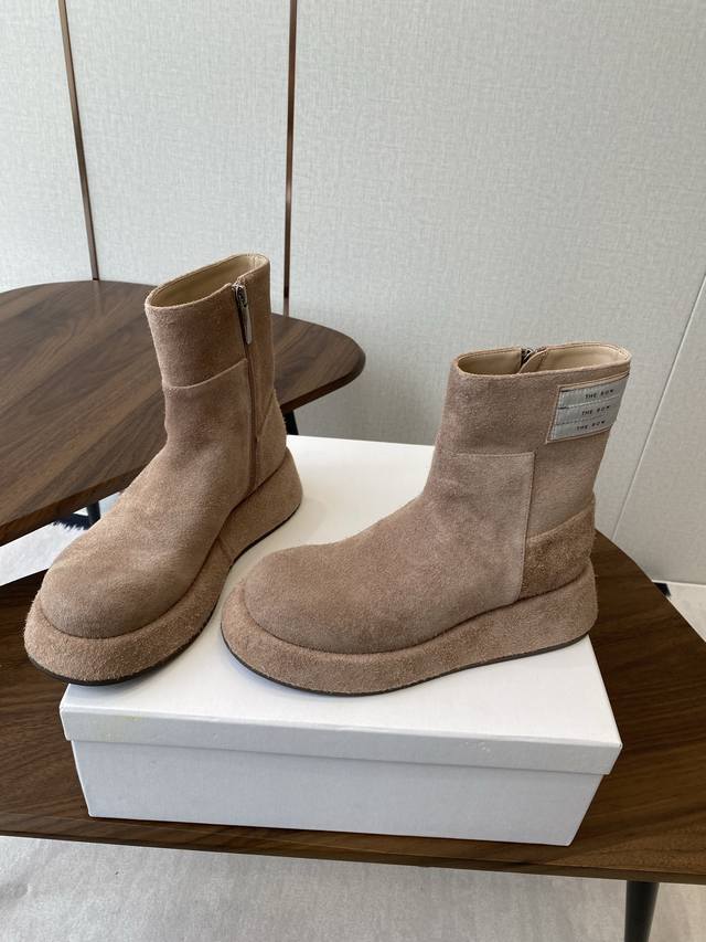 The Row真皮法式复古圆头极简百搭平底厚底切尔西短靴脚真的是史上我穿过最最舒服的款式太柔软啦!