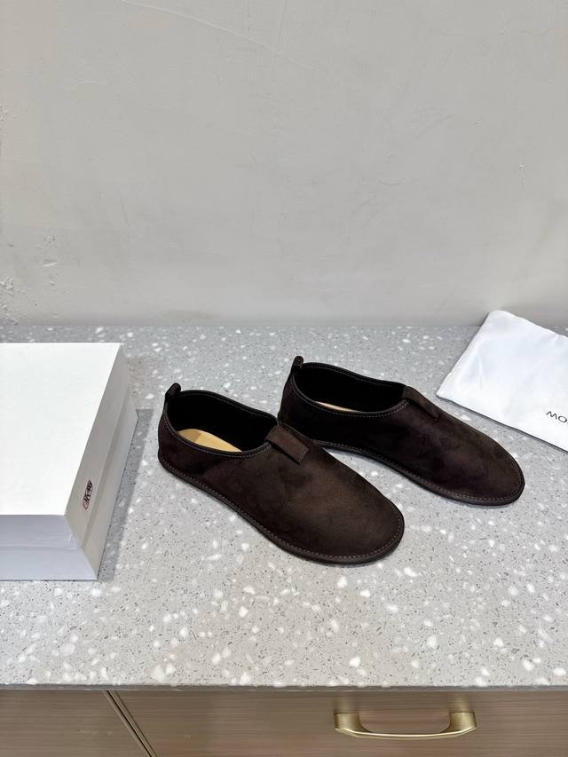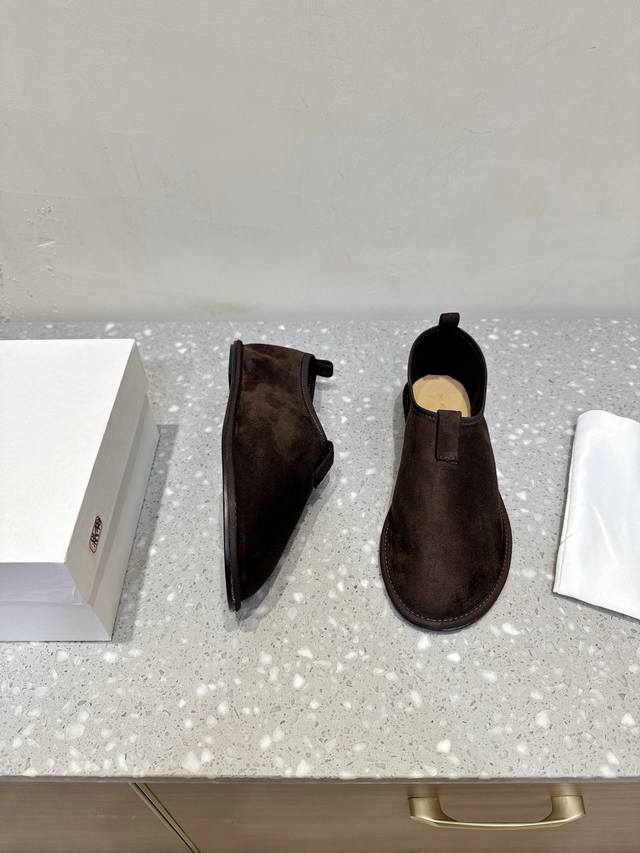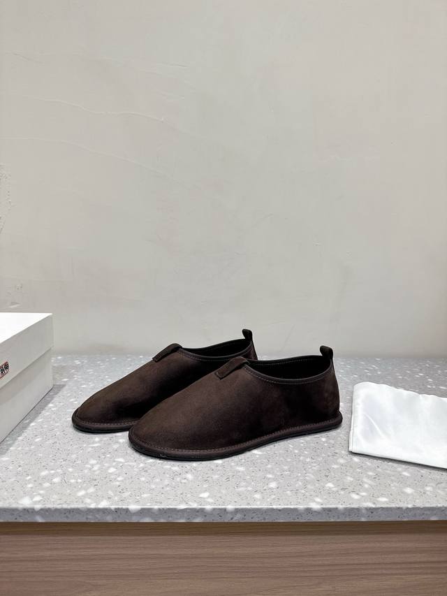 The Row 小众潮牌 25Ss秋冬新款 极简风 反绒皮 一脚蹬 乐福鞋