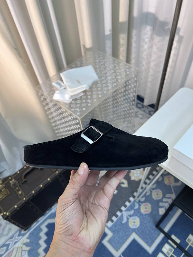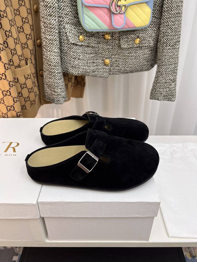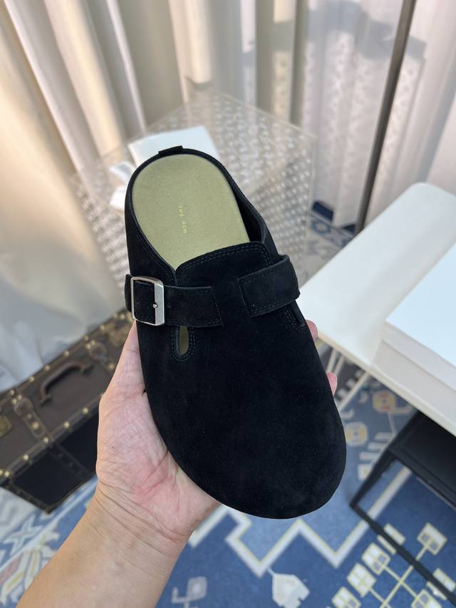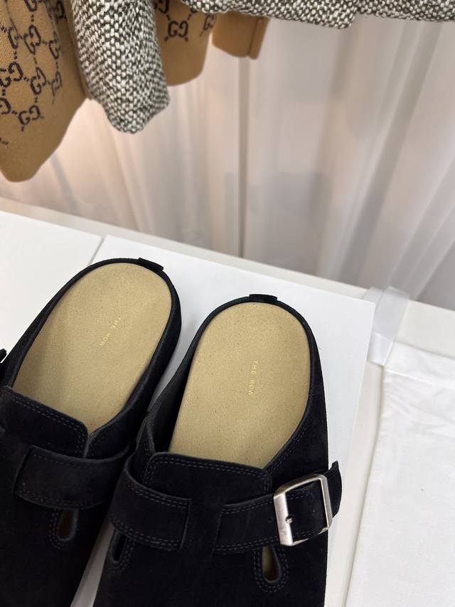 The Row 24新款包头拖 勃肯拖 复古味随意搭配都好看 一贯极简风格 没有任何logo点缀 简单即是高级 这款绝对是时髦女性的必备单品 鞋面 牛反绒1:1