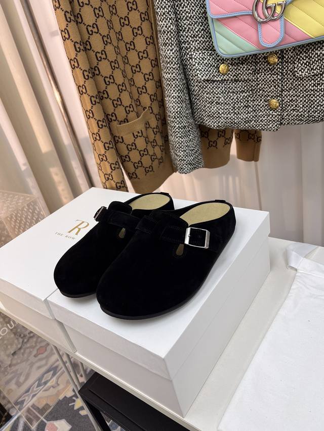 / The Row 24新款包头拖 勃肯拖 复古味随意搭配都好看 一贯极简风格 没有任何logo点缀 简单即是高级 这款绝对是时髦女性的必备单品 鞋面 牛反绒1:1