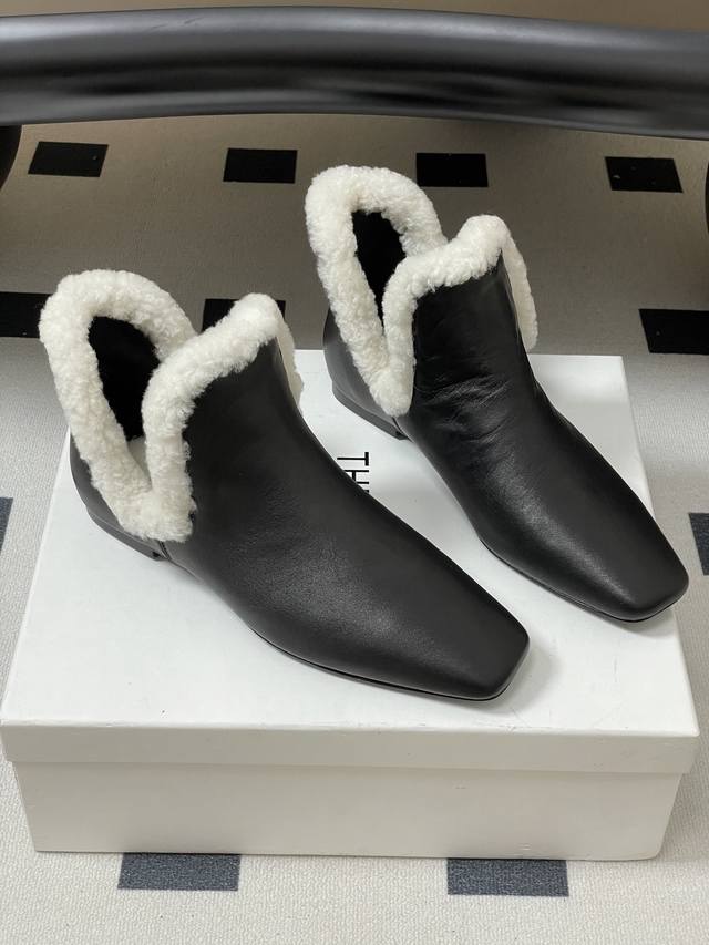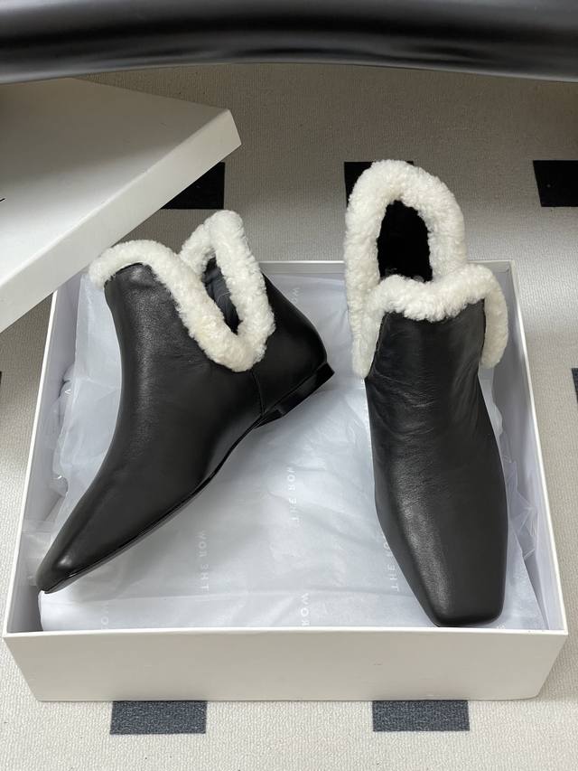 The Row 25秋冬新款 Tr羊毛短靴超舒适极简风毛里靴子