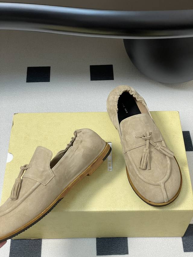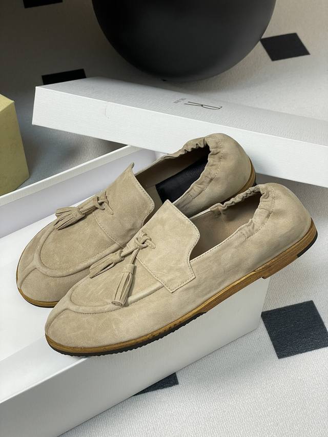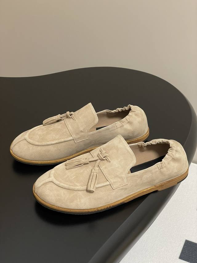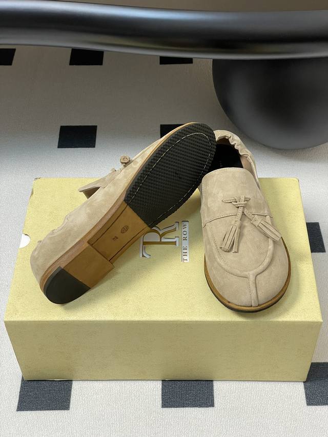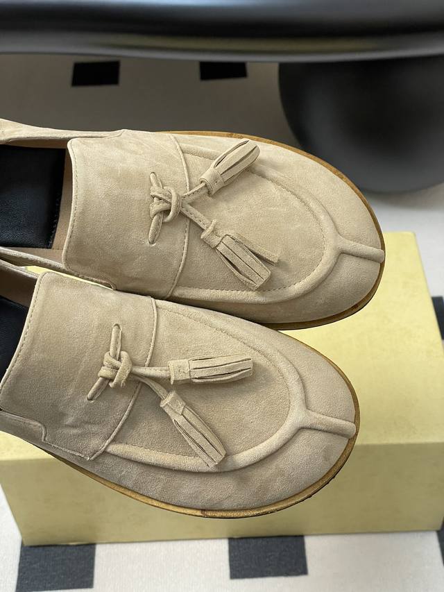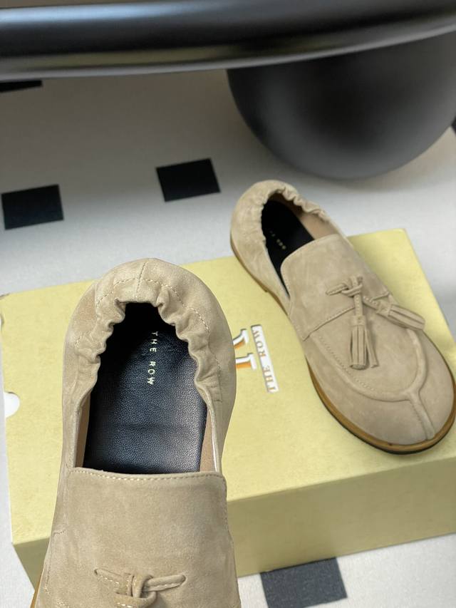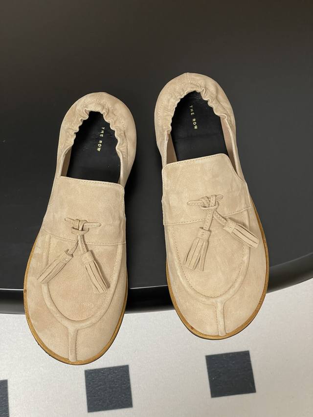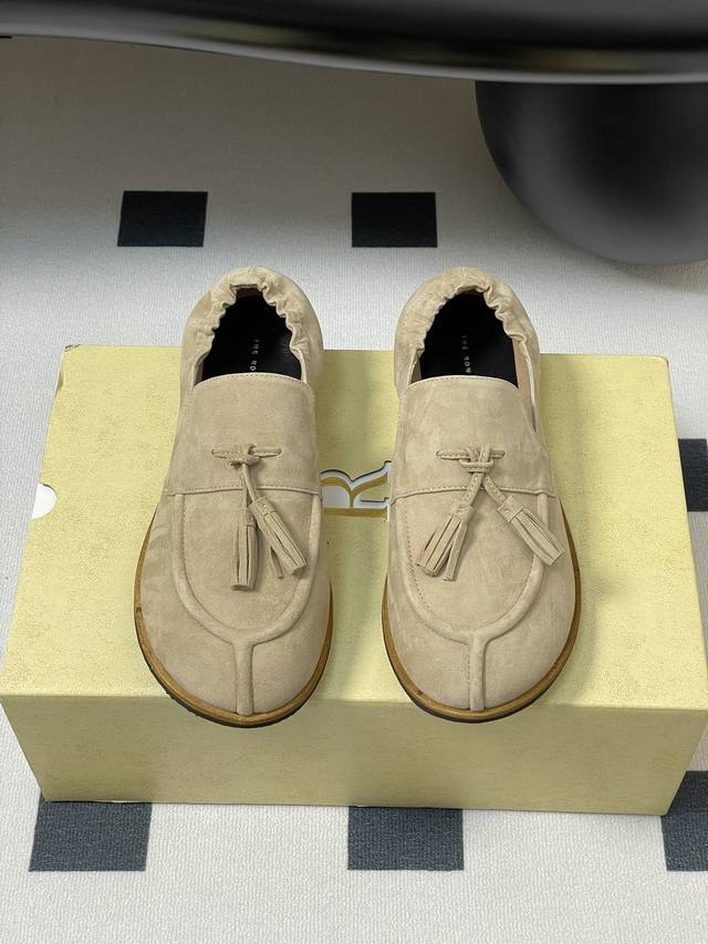 The Row 25S早春新品中性复古简约一脚蹬乐福鞋流苏后松紧奶奶鞋单鞋