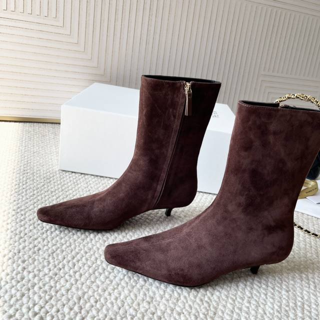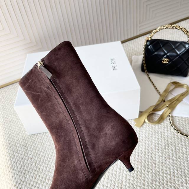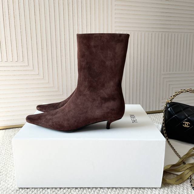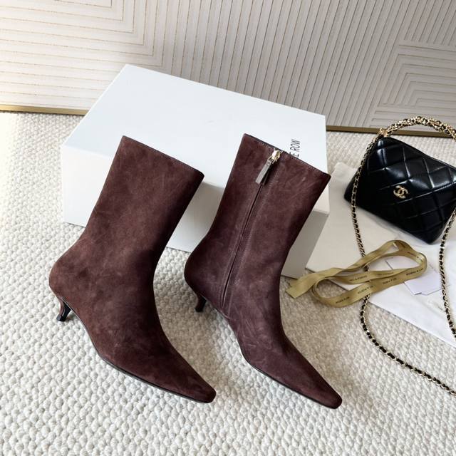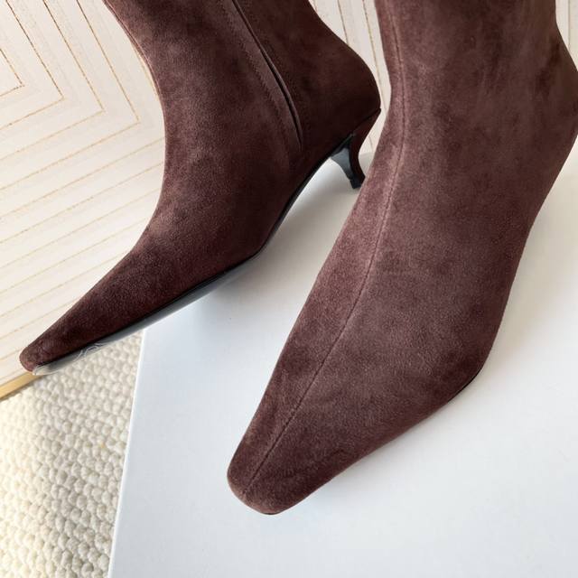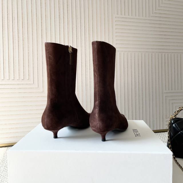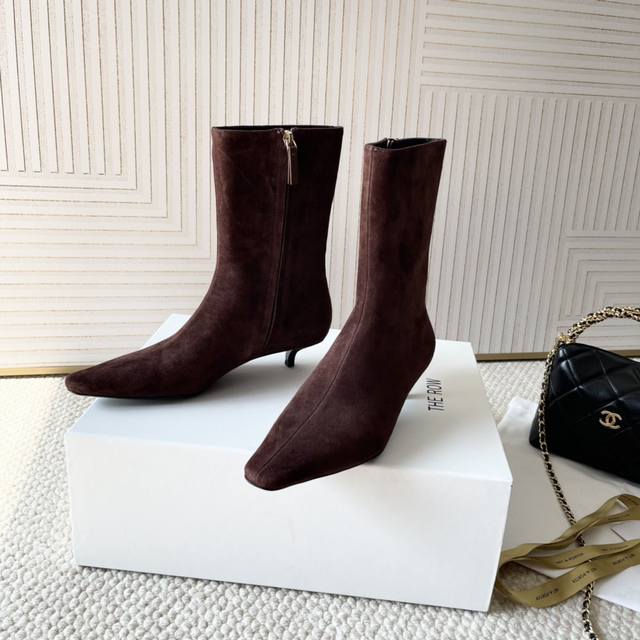 the Row24年秋冬新款 小方头猫跟裸靴 低跟短靴子 正码:35-41