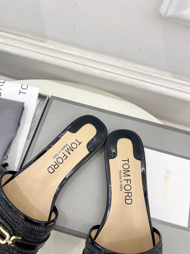 Tom Ford 汤姆福特2025Ss早春新品 秀场同款 金属扣平底拖鞋 Tf TfTf作为这两年最受欢迎的设计师品牌,设计简单、细节巧妙、清新脱俗! 不想满大